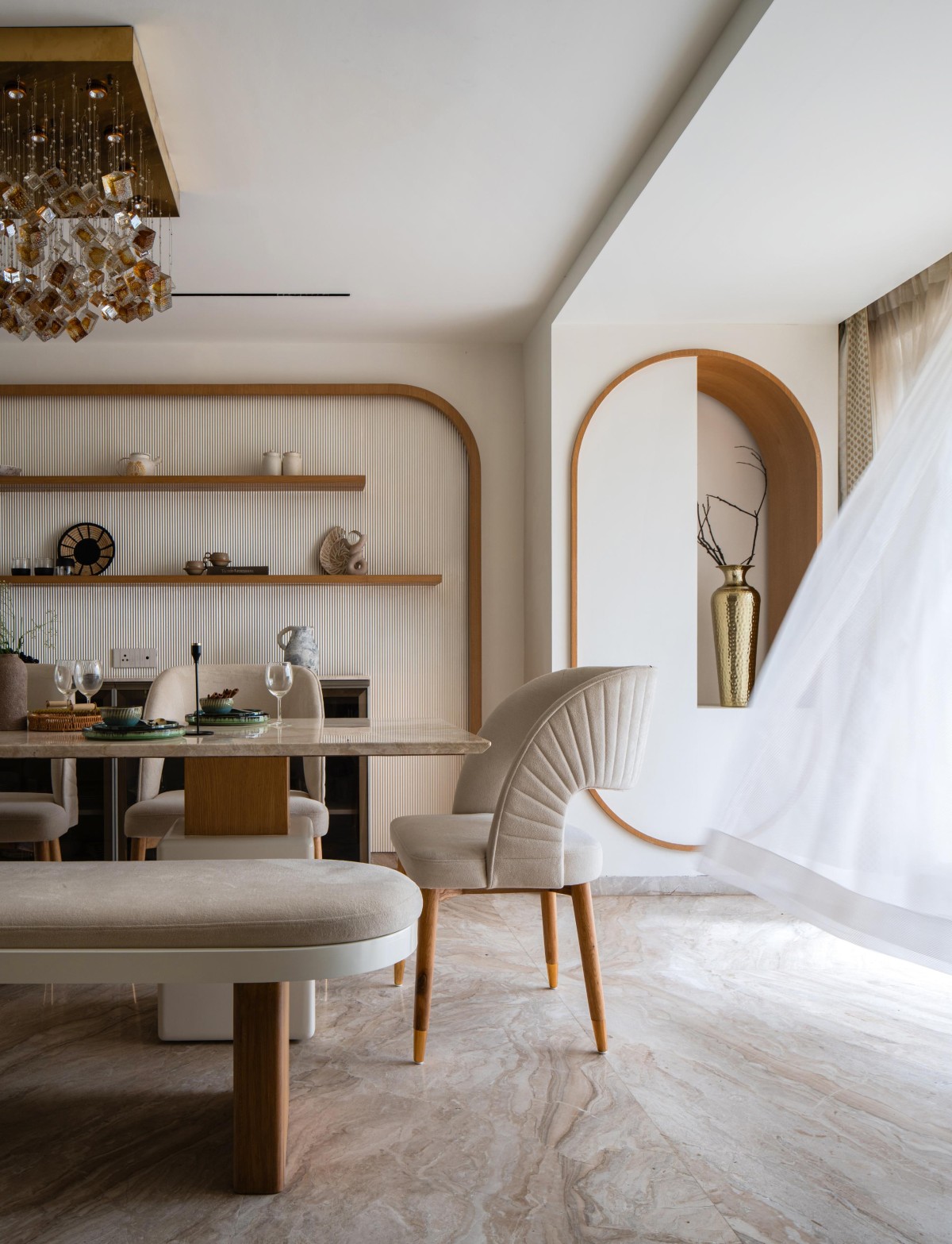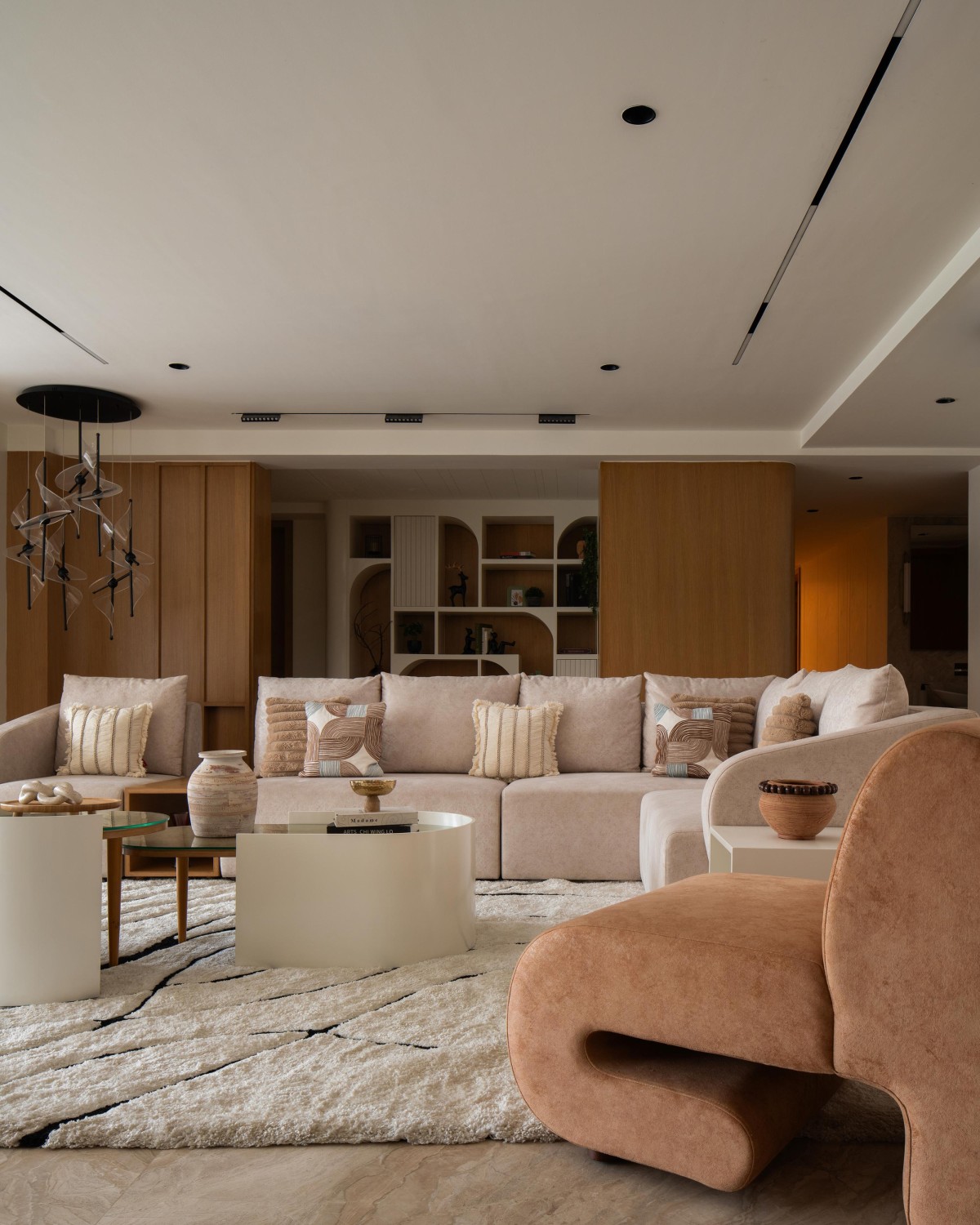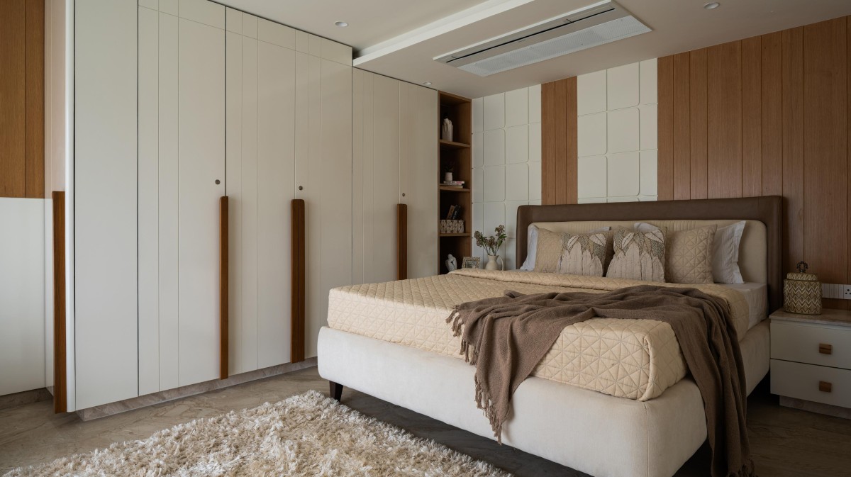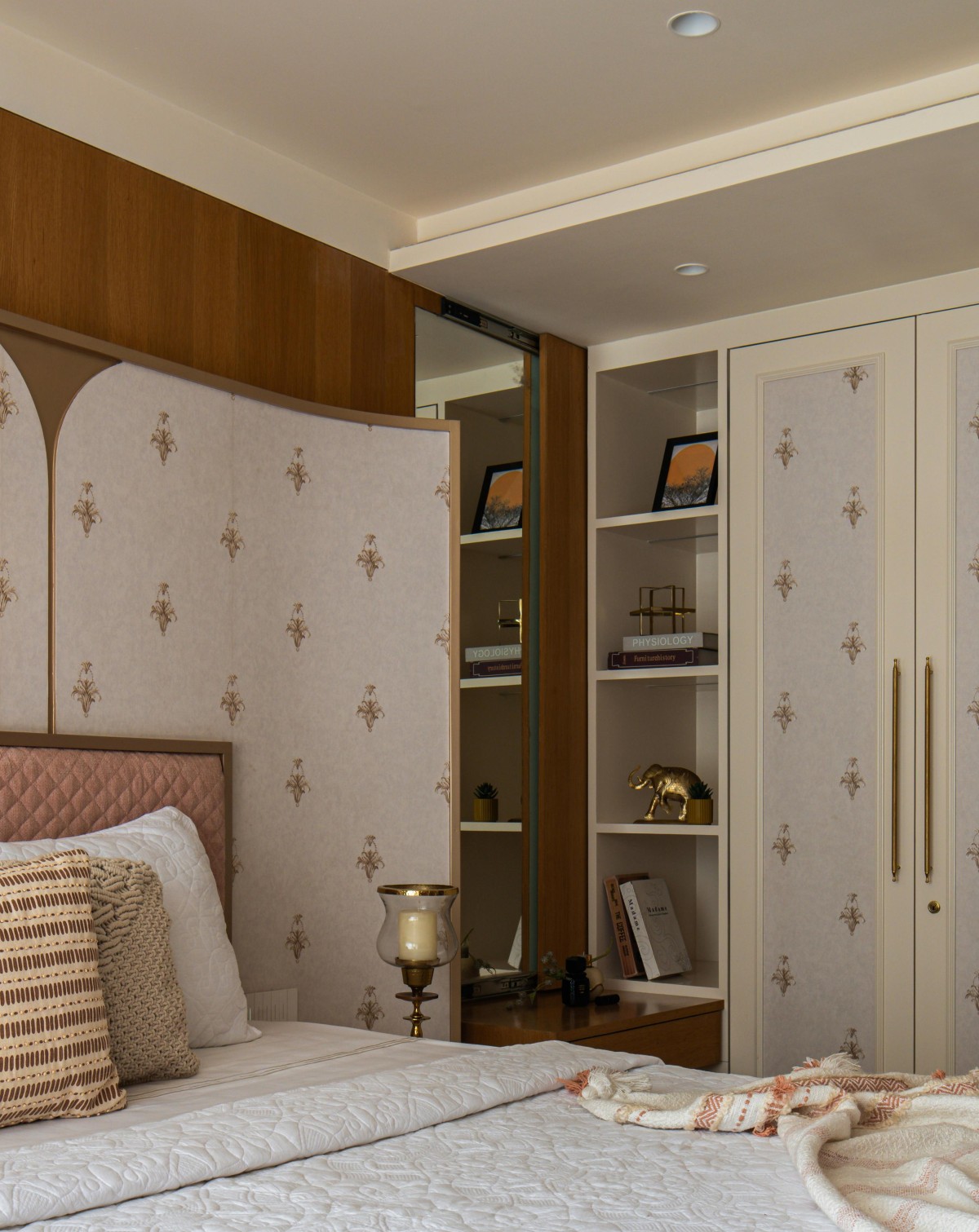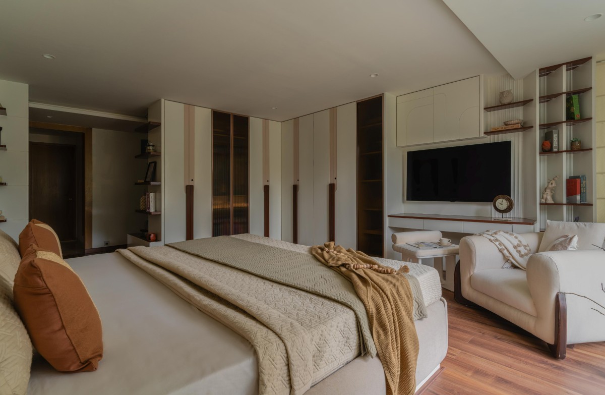 This bespoke unit offers functionality on both sides—his and hers—while maintaining visual harmony. Its layout allows for increased storage, enhanced accessibility, and a sense of openness typically missing from wardrobe zones. The design also smartly conceals utility areas and creates a subtle sense of rhythm within the master bedroom suite. This element beautifully reflects our studio's approach: thoughtful functionality layered with quiet luxury.