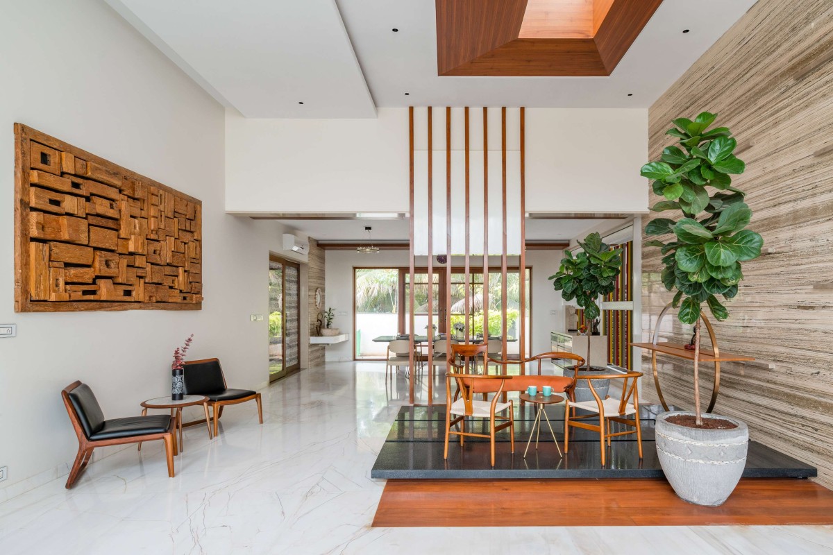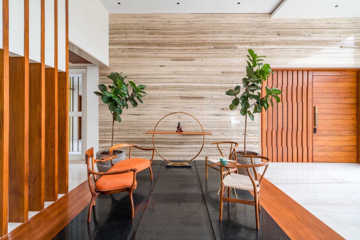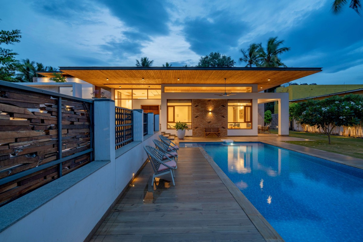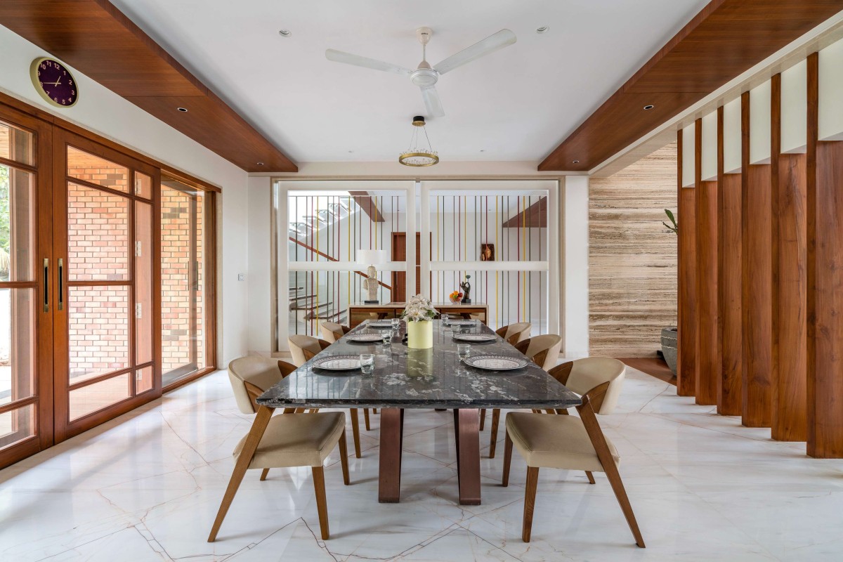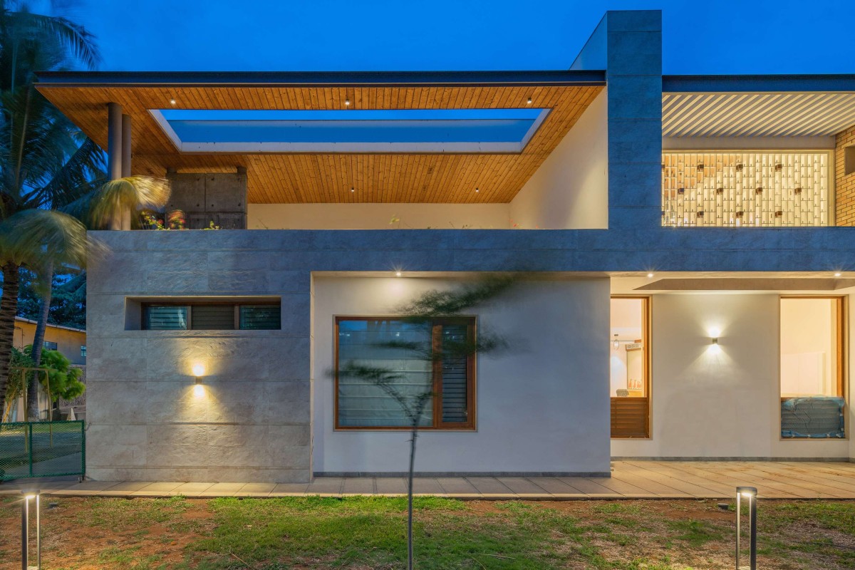 The residence, which is defined by strong geometry and emphasises linearity in both horizontal and vertical directions, is in perfect accord with the family's refined taste and requirements in every aspect. While sitting in a traditional neighbourhood in a busy metropolis, the house in Coimbatore makes a bold identity for itself by combining a variety of design elements.