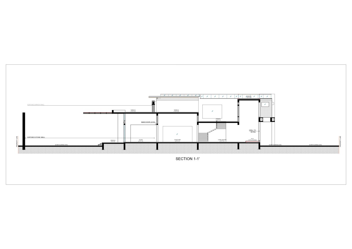 On the side of the house where it is difficult to bring in light and ventilation, a courtyard is created on the outside to ensure that the formal living and bedrooms are well lit and ventilated. A small private sit out is created on the outside for the residents to enjoy the ambiance and the serenity of the landscape. The design is attempted to separate private and public spaces and to create an ambiance in which the distinction between outdoor and indoor spaces is lost, allowing residents to enjoy an unrestricted and unhindered ambience.