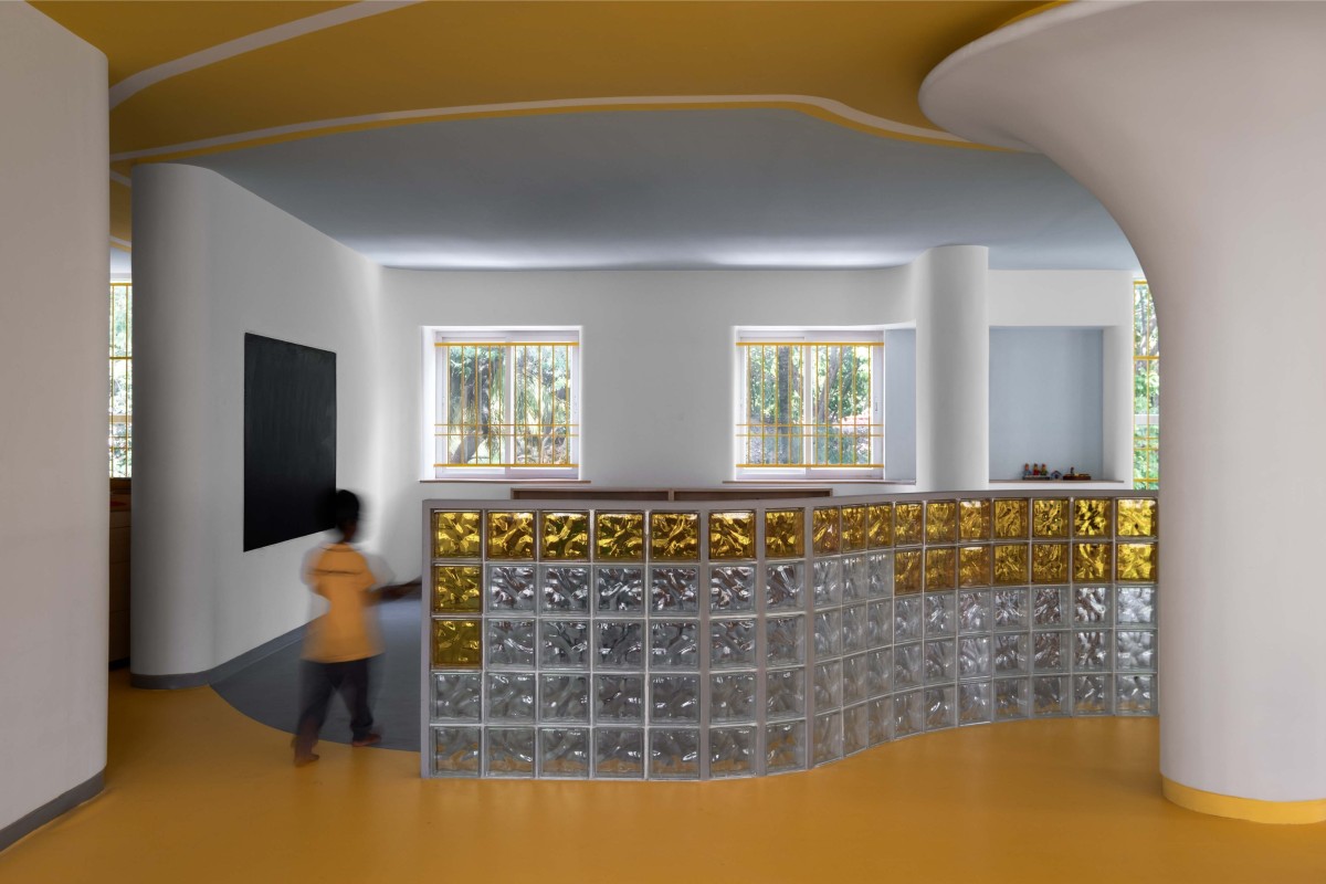 A glass block wall of Studio for Little Explorers by Studio Fivefold
