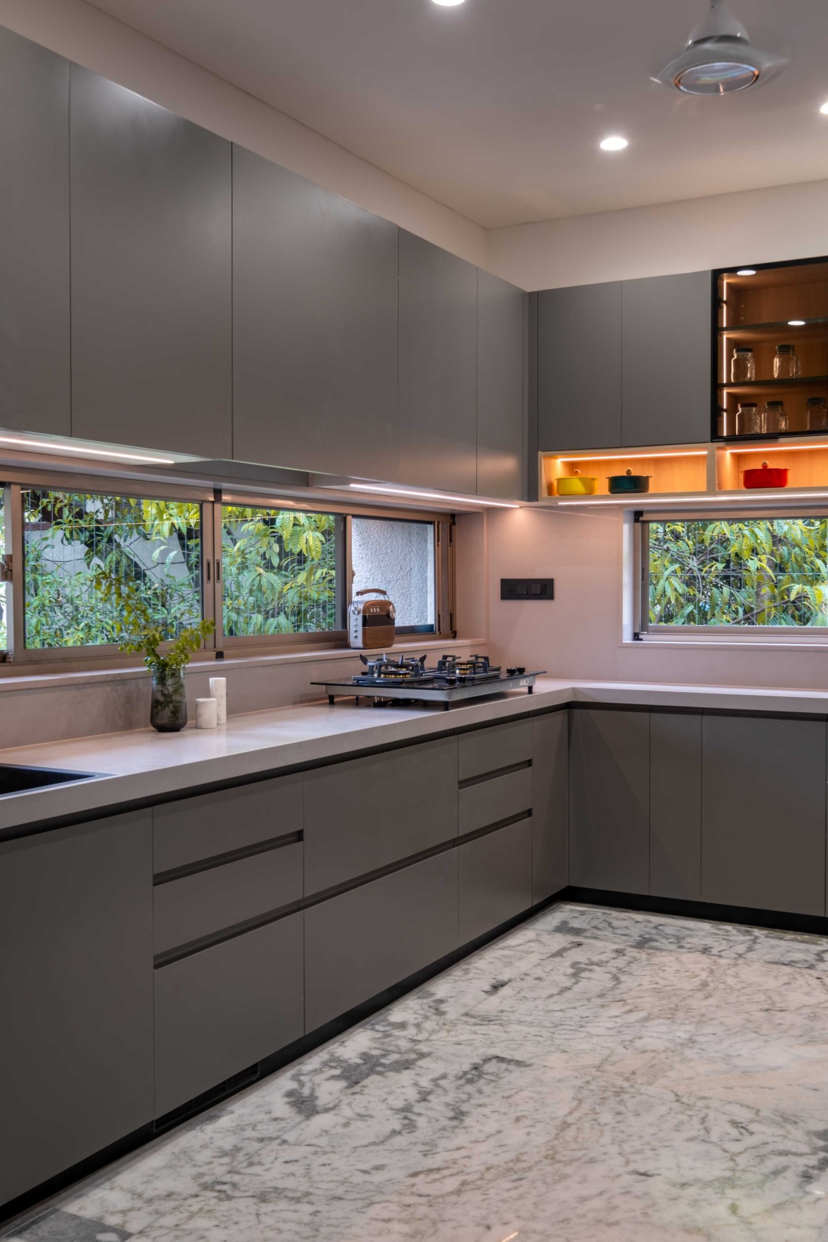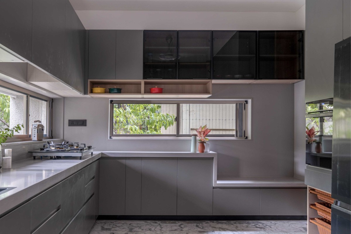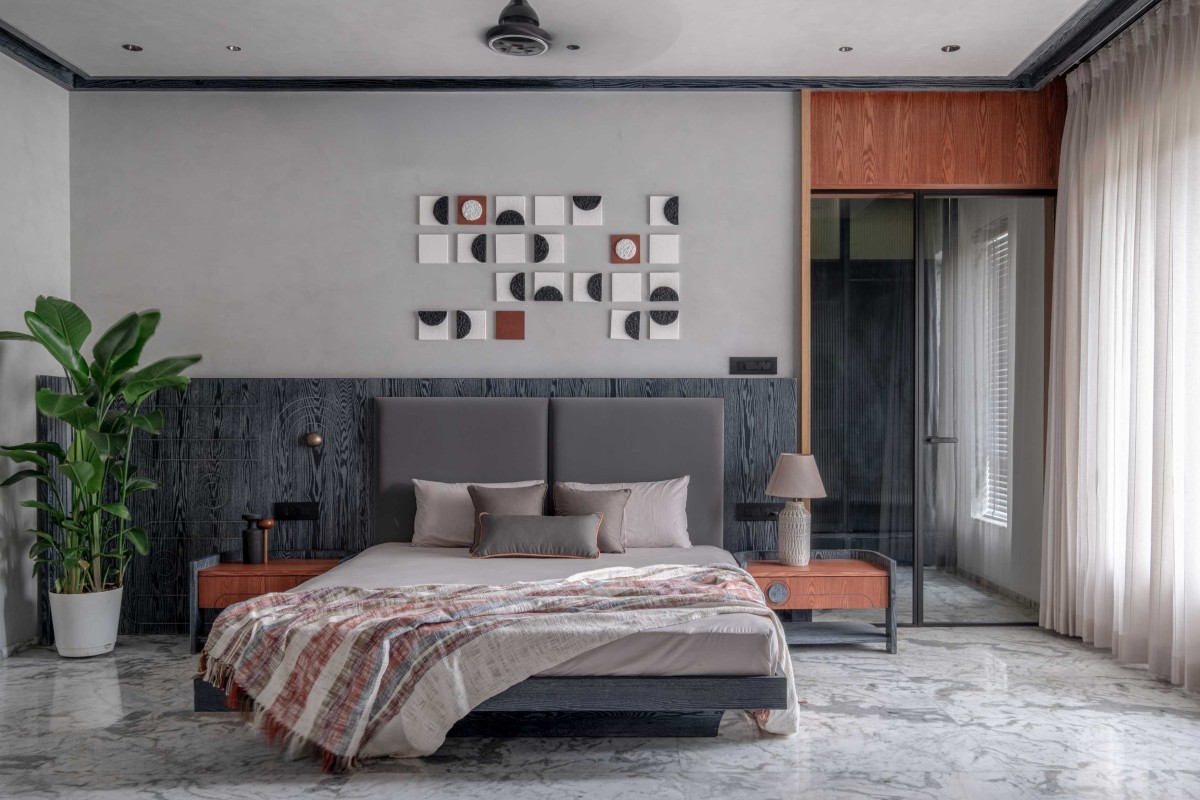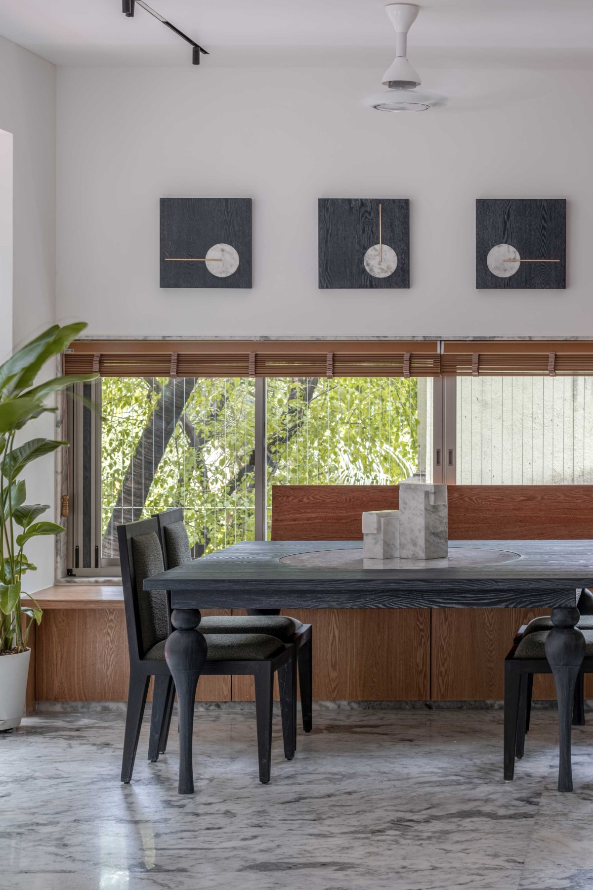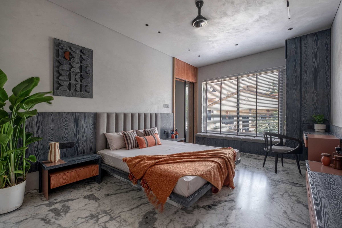 Every piece of furniture, soft furnishing, and design detail was custom-designed and built on site, “We didn’t want to style the house later with separate pieces. We wanted the architecture and furniture to feel like one continuous story,” says Jinesh. Except for the outdoor seating, everything was conceived and crafted for this home.
