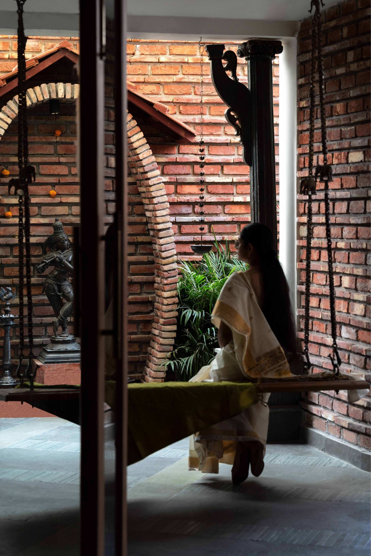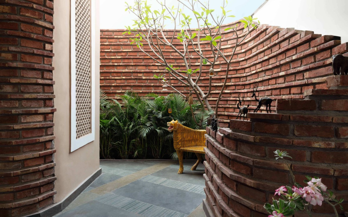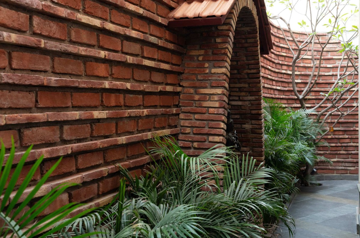 Verandah with exposed brickwork of Thalayalam by Ant Studio