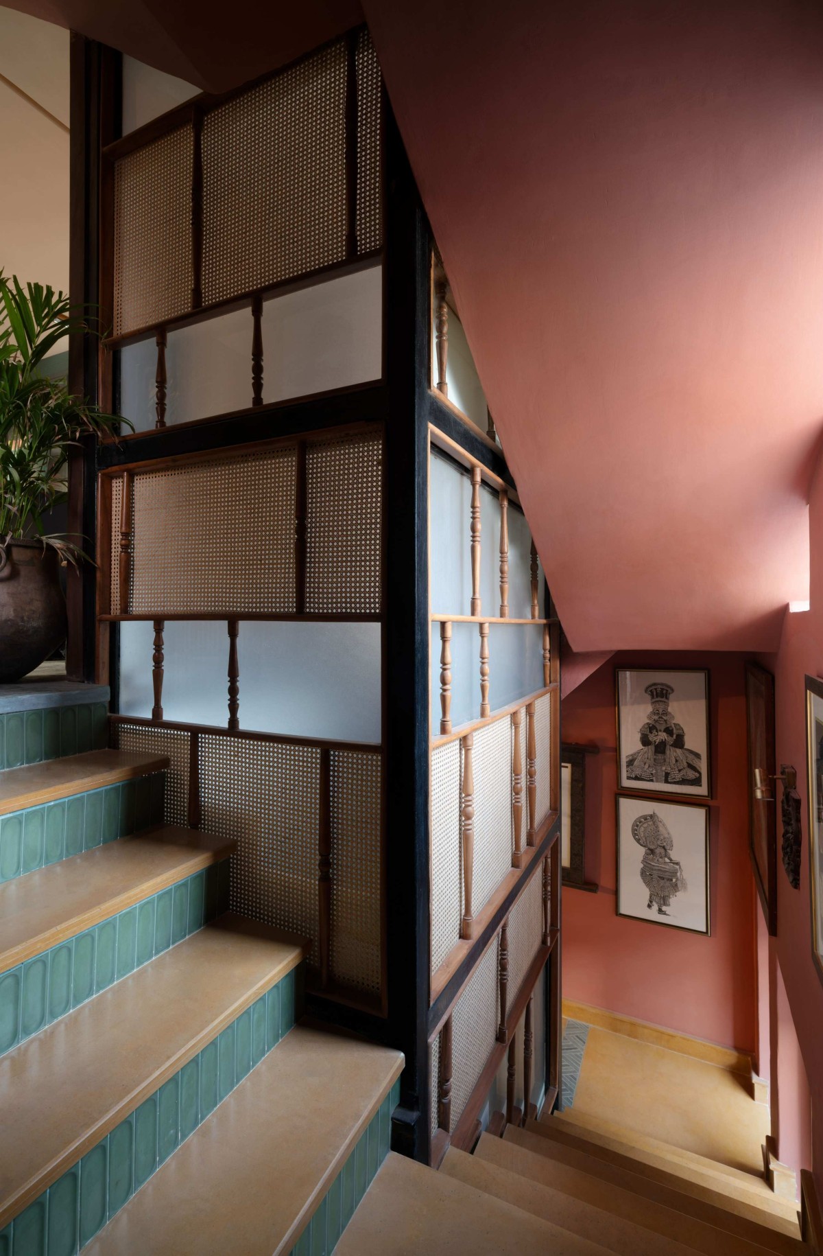 Stairs and lift panels of Thalayalam by Ant Studio