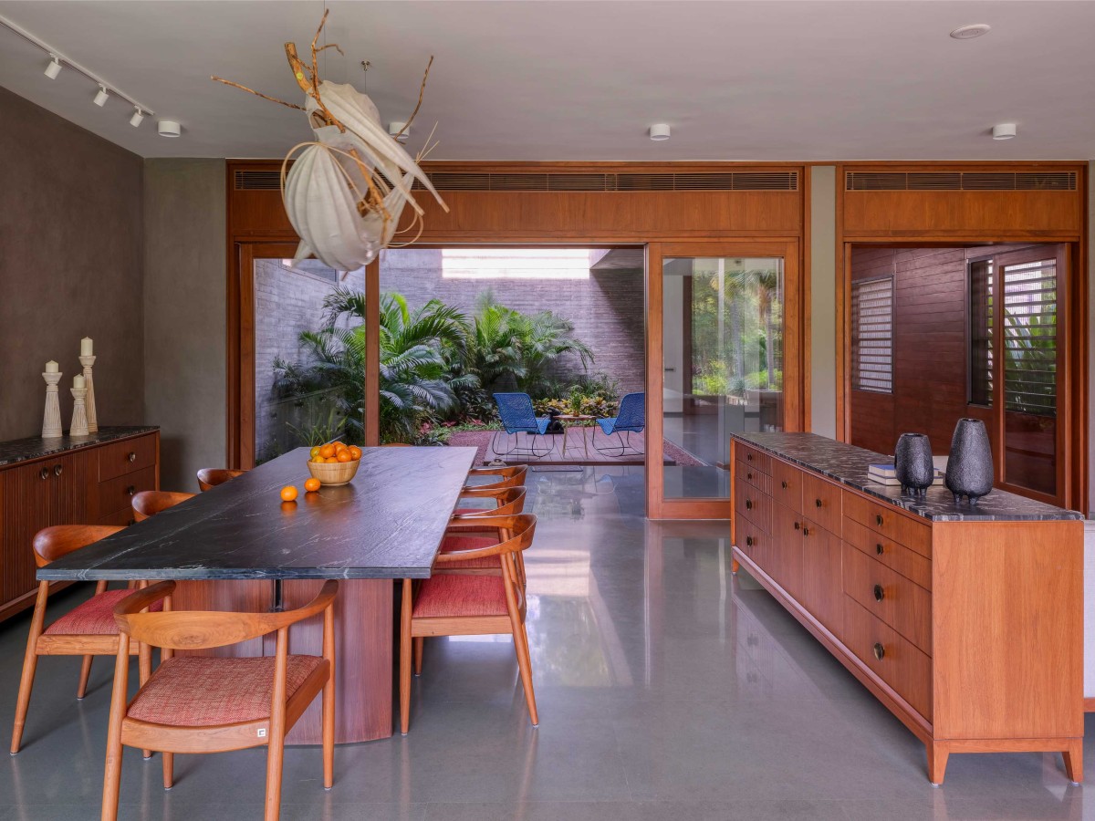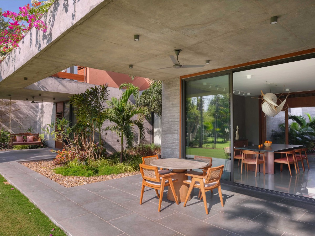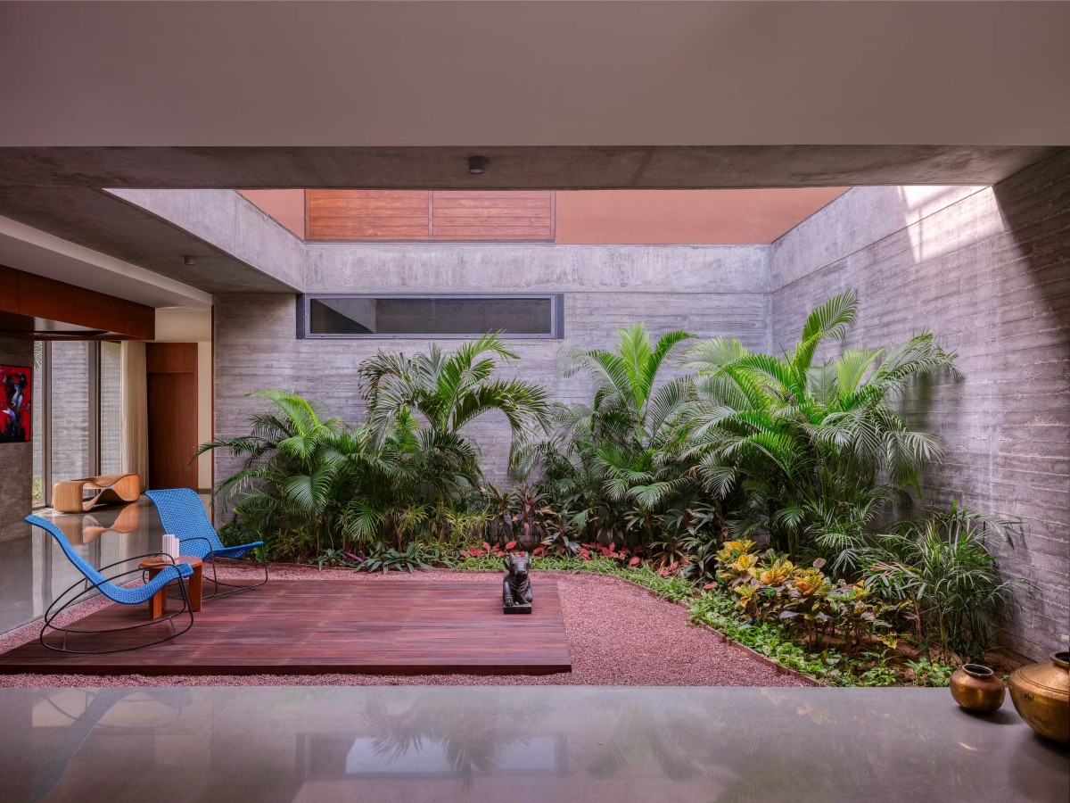 Courtyard to Dining view of The Aranya House by Modo Designs