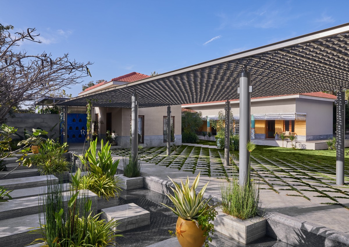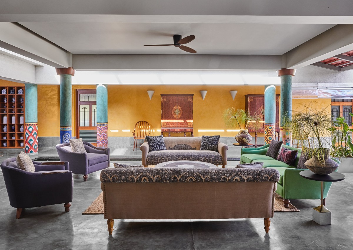 The olive and ochre room uses a heritage pattern tile in Kota,