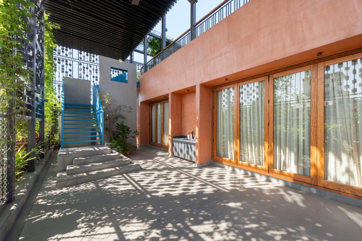 There is delight in the small things. An artist friend-made chandelier that catches the sun. Skylights that draw in light without letting the insects in. Birds nesting in nooks of the breathable facade. The house is not sealed from its environment. It is in concert with it. In fact, it offers a little rebellion: that in a city of concrete, one might still grow a garden, still hear the birds, still feel the air on one's face without the dull hum of an air conditioner. The home is cooled passively and cleverly. Its systems are designed to whisper rather than roar.