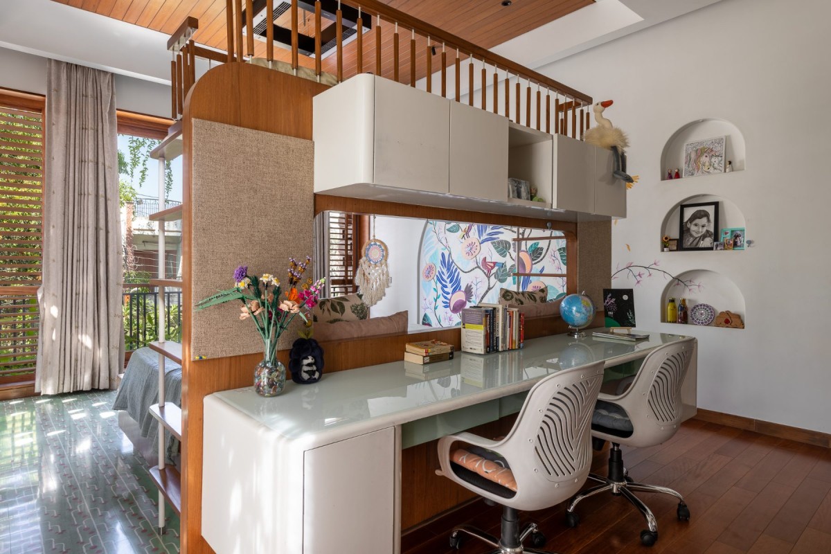 Study nook at kids bedroom of The Earthen Veil by Environ Planners
