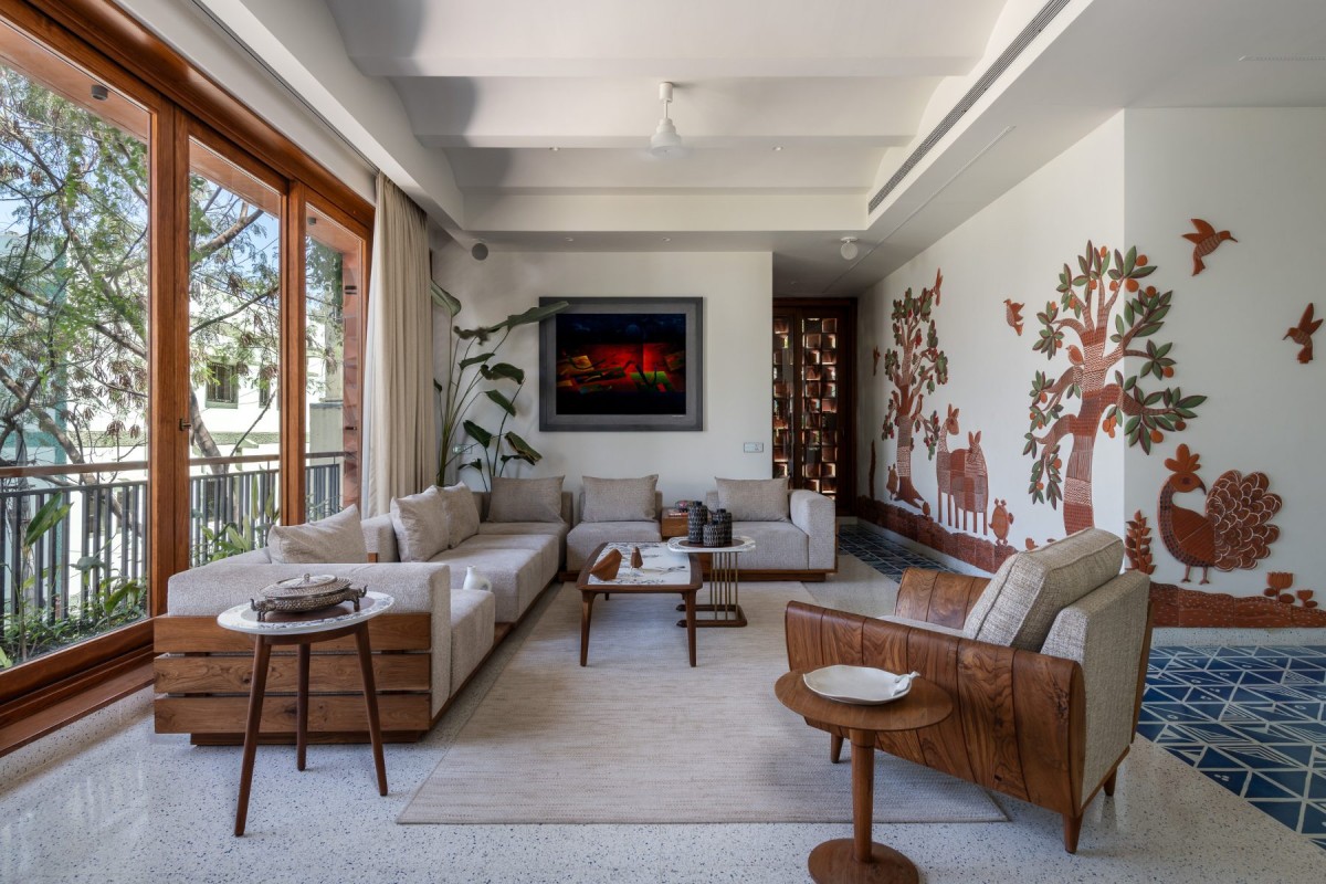 Living room of The Earthen Veil by Environ Planners
