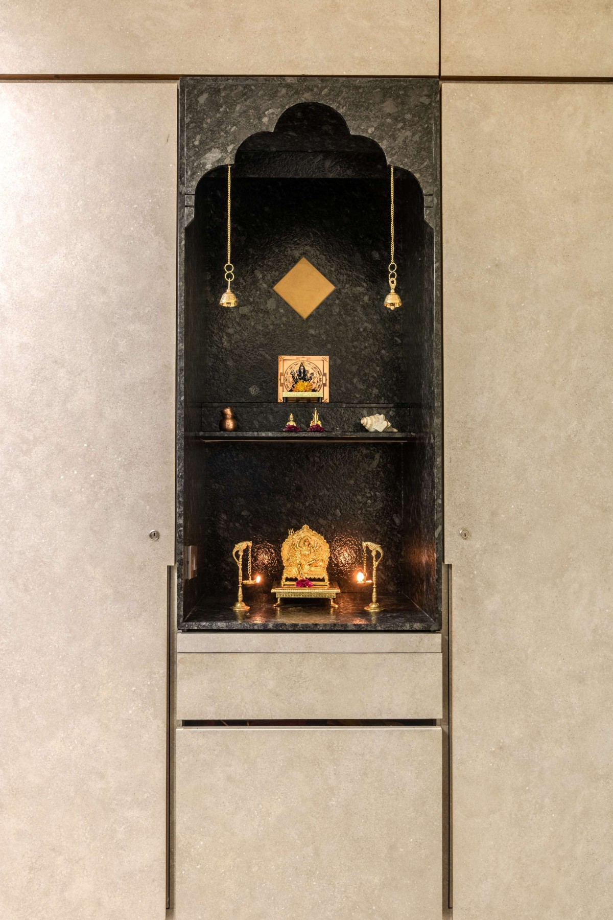 Pooja Mandir of The Falling Stone by Plot Design Workshop