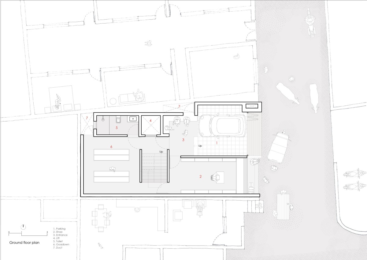 The defining design element is the central court, which serves as a crucial Vertical Connector and thermal chimney. All floors open onto this court, connecting the separated work (shop/godown) and live (residential) spaces through a central bridging volume.
