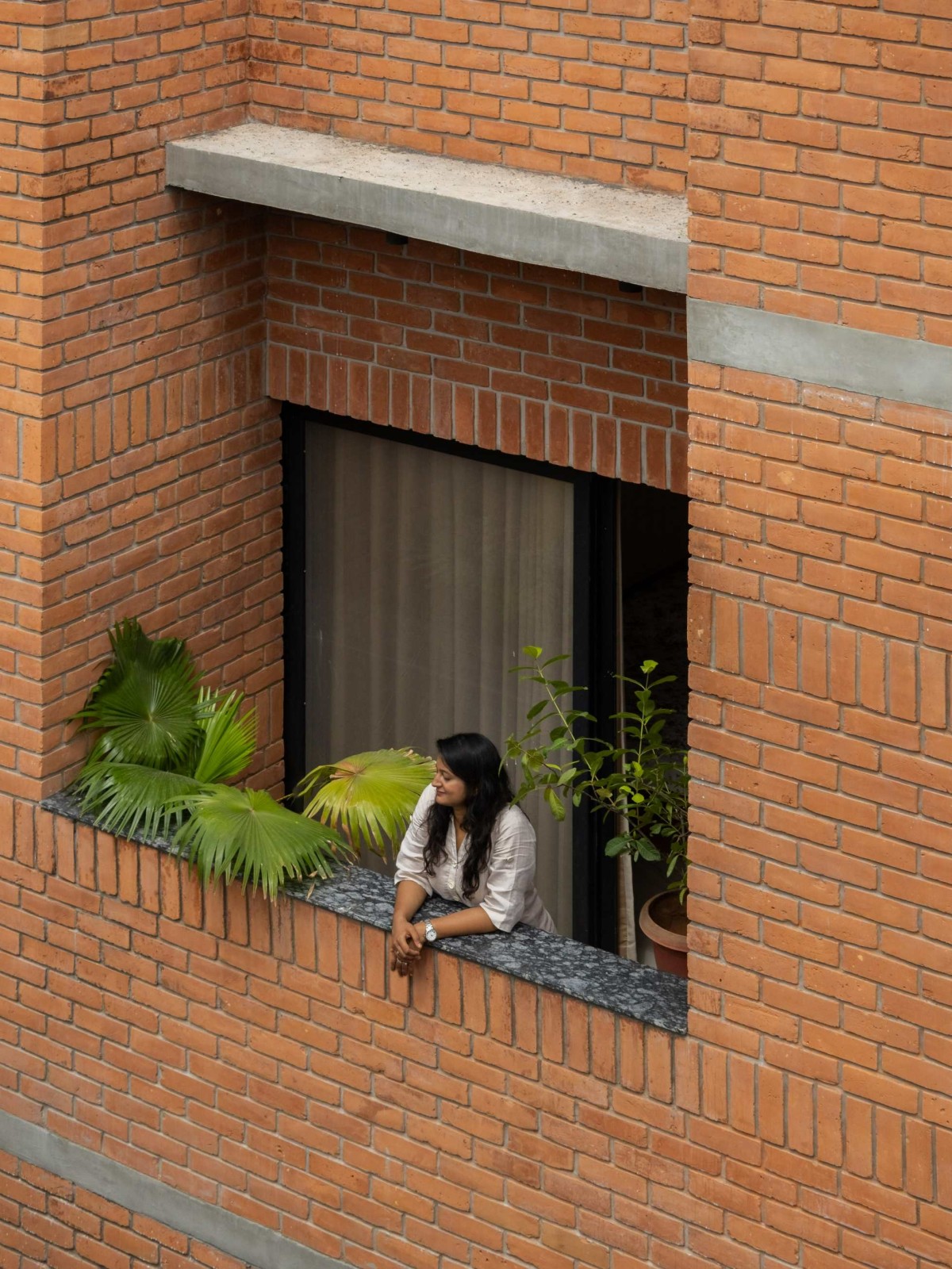 Built using local Red baked bricks, the house intentionally mirrors the city’s historic fabric while offering a contemporary living experience.