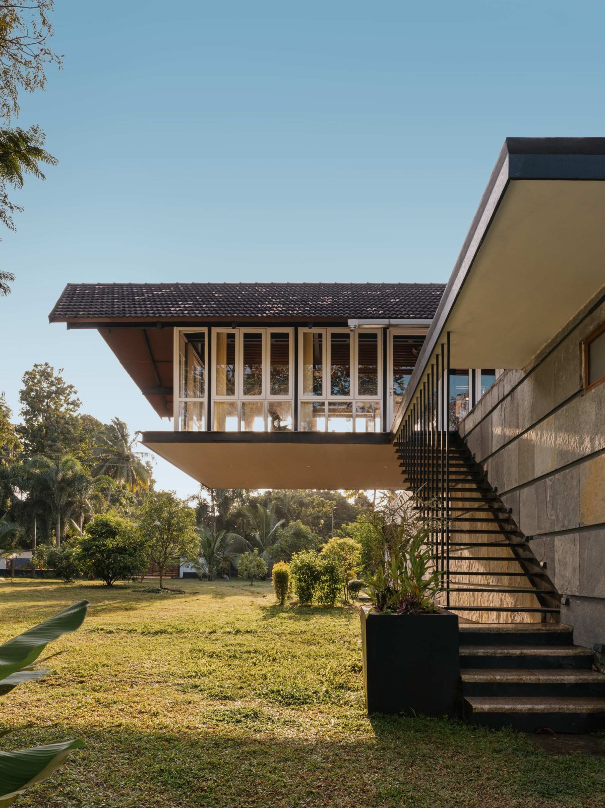 External staircase to upper floor of The House of Quad by Thomas Parambil Architects