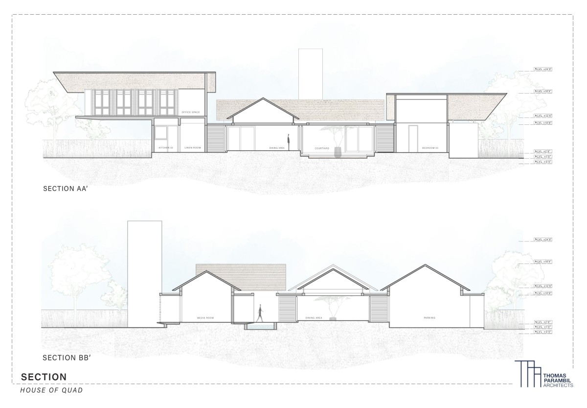 Section of The House of Quad by Thomas Parambil Architects