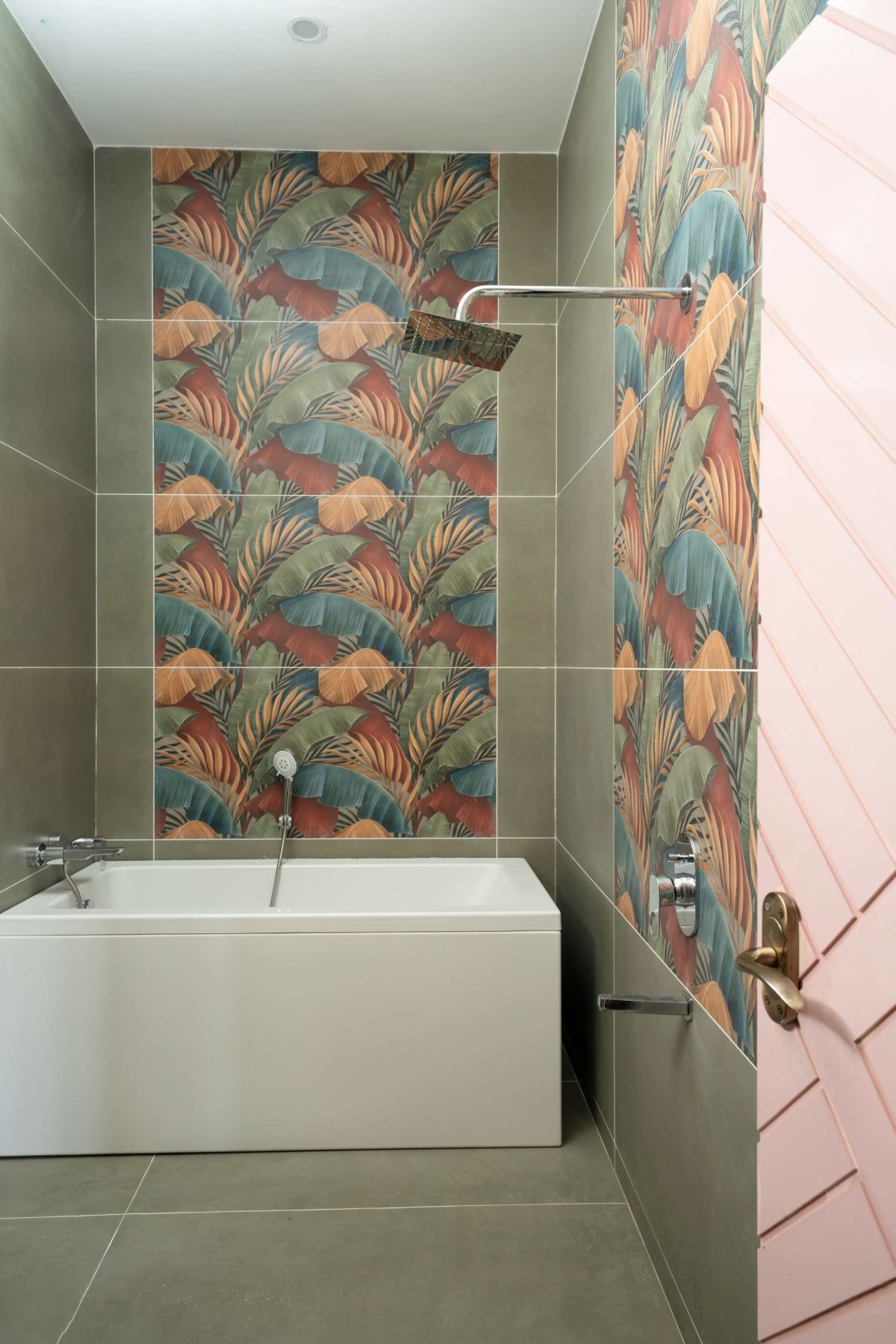 Material selection played a crucial role in achieving thermal comfort. The house is predominantly constructed using porotherm blocks, known for their insulation and energy efficiency. The southwestern façade is subtly inclined toward the northwest, enabling indirect daylight penetration while preventing direct heat gain. Traditional handmade Athangudi tiles are used for flooring throughout the house, enhancing thermal performance while adding cultural richness to the interiors.
