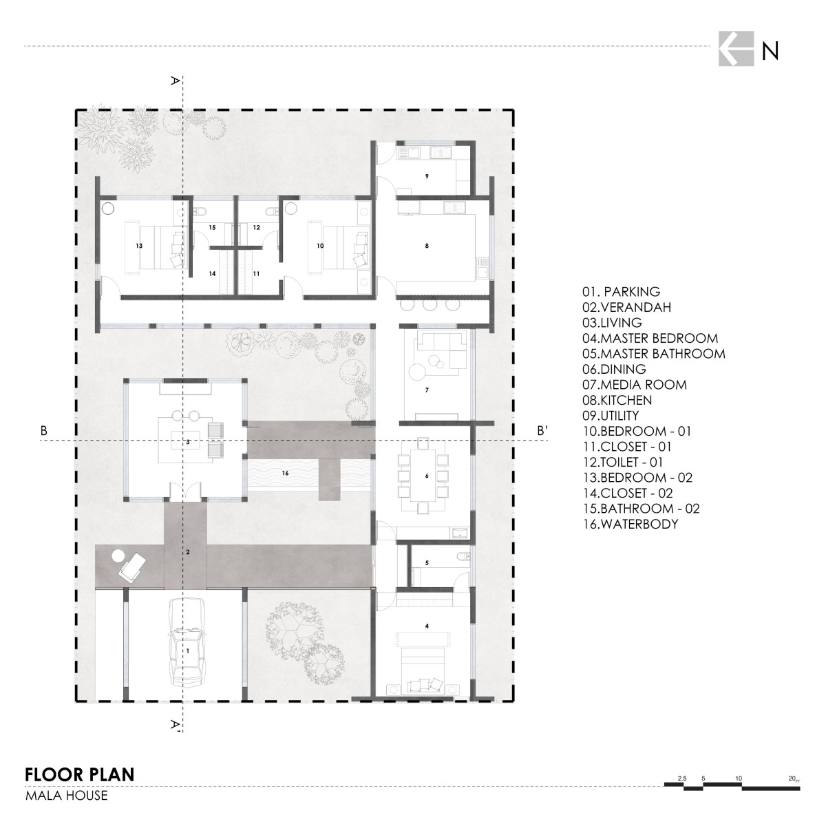 Floor Plan of The Mala house – “Nostalgia” by Thomas Parambil Architects