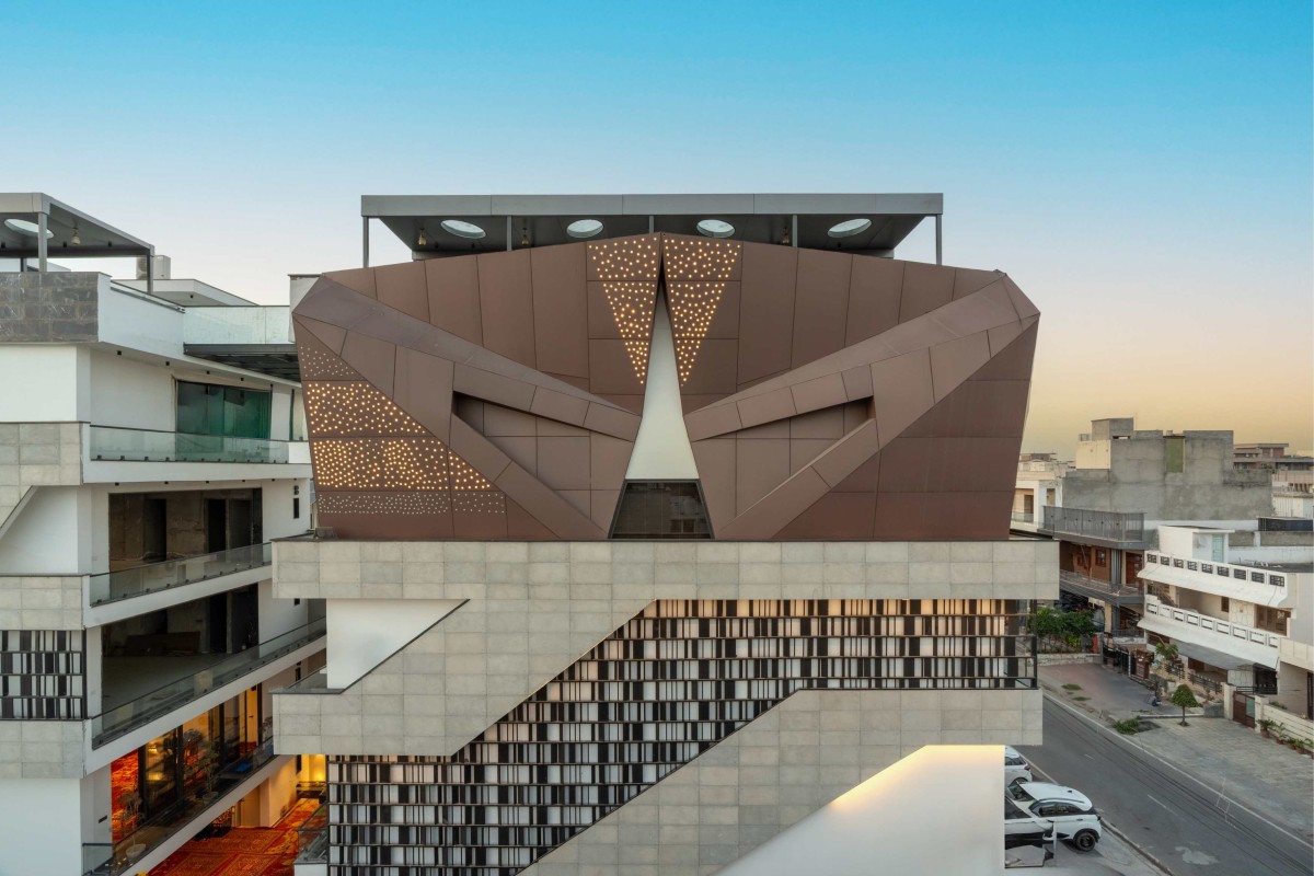 Their design philosophy centres on the belief that architecture should reflect its owner's personality. In this case, the client, an individual who thrives on standing out from the crowd, desired a structure that would do the same. This vision led us to explore a bold, diamond-shaped facade, with the client's office occupying the very pinnacle of this striking design element.