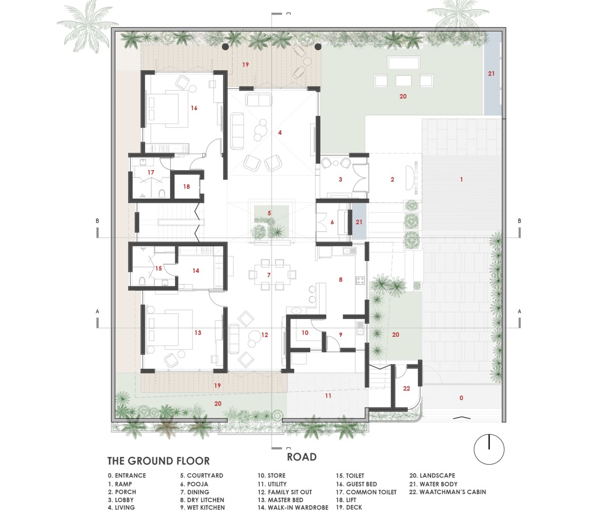 Ground Floor Plan of The Skylight Villa by Ar. Yuvaraj Chougule & Associates