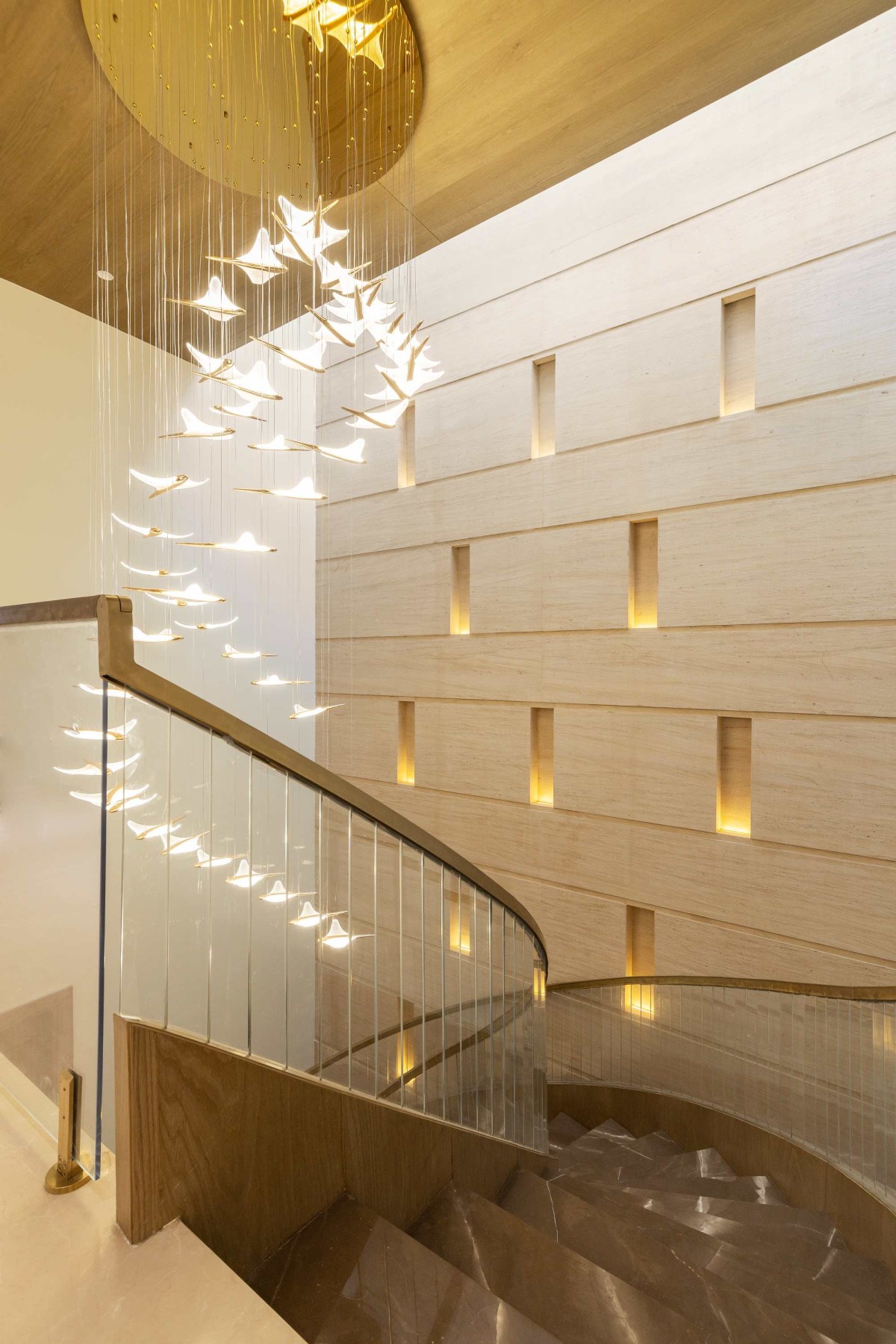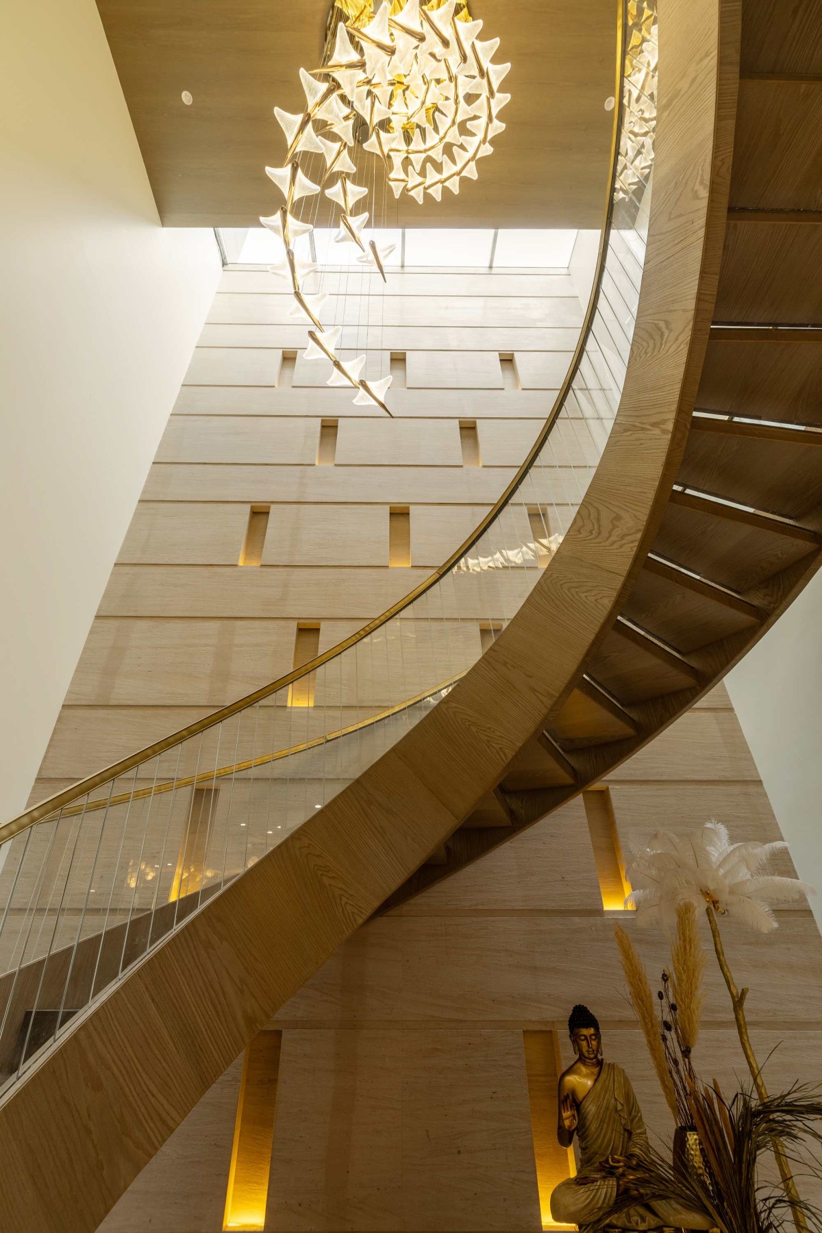 Function and form harmonize throughout the design—from the floating staircase at the entrance to the expansive double-height volumes in public spaces and private terraces nestled behind layers of greenery. Material continuity and visual transparency blur the boundaries between indoors and outdoors, unifying the living experience. Every element, from tactile wooden gates to ambient lighting, is thoughtfully curated to enhance lifestyle while responding sensitively to the local climate.