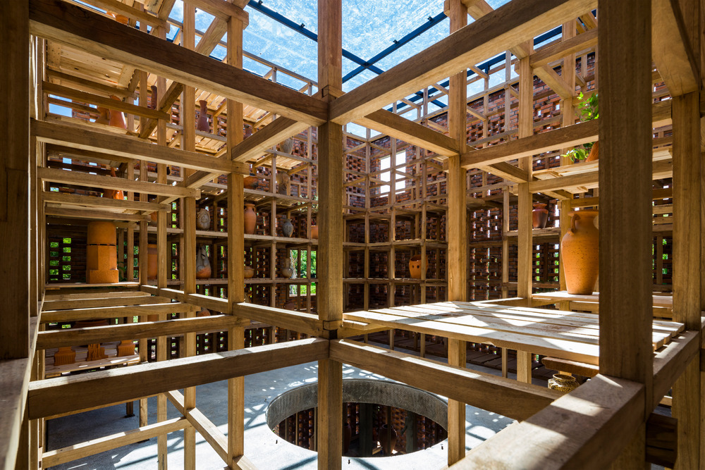 The outermost layer of the studio is made by clay solid brick, which reminds people about Vietnam's traditional furnace. The studio also carries the characteristics of Champa culture as the area was part of Tra Kieu, Champa Kingdom capital from 4th to 7th Century.