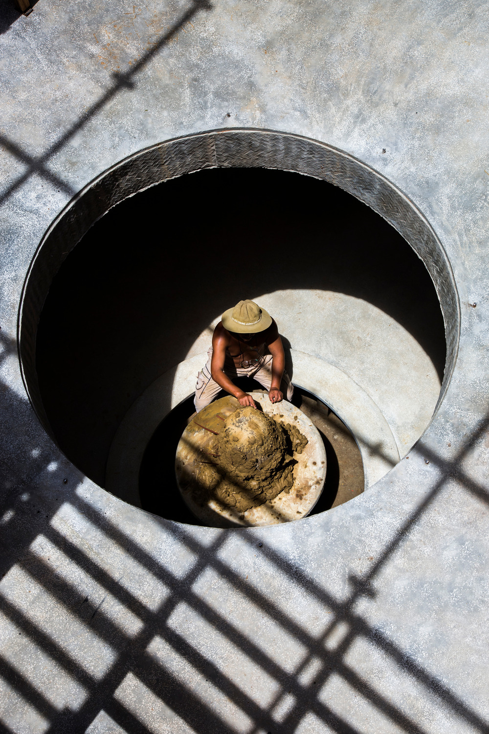 The center of the studio consists of two floors. In-ground floor, there is a turning table that the artist works. The artist and his works can interact with the sunlight, from the sunrise to twilight. Here, people can find the conversation of the artist and his works; and himself and his shadow in the silence.