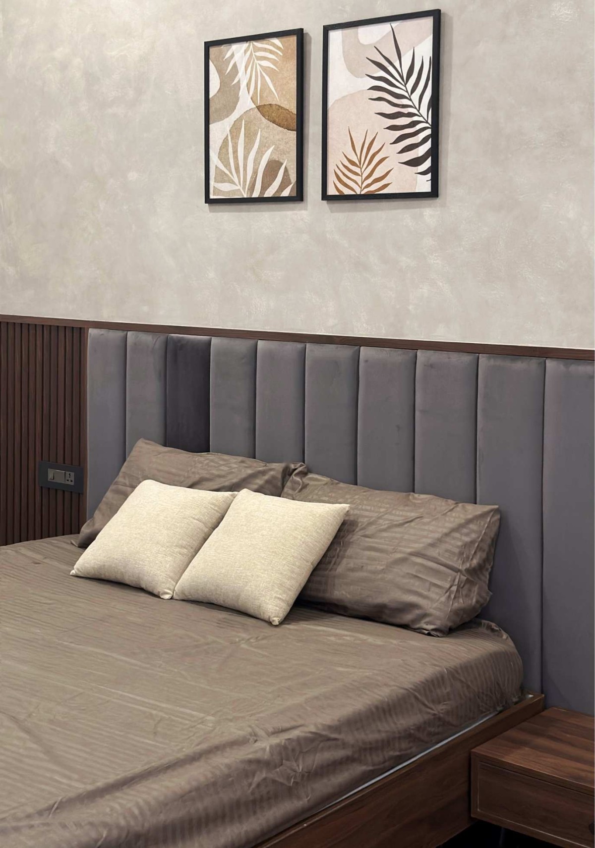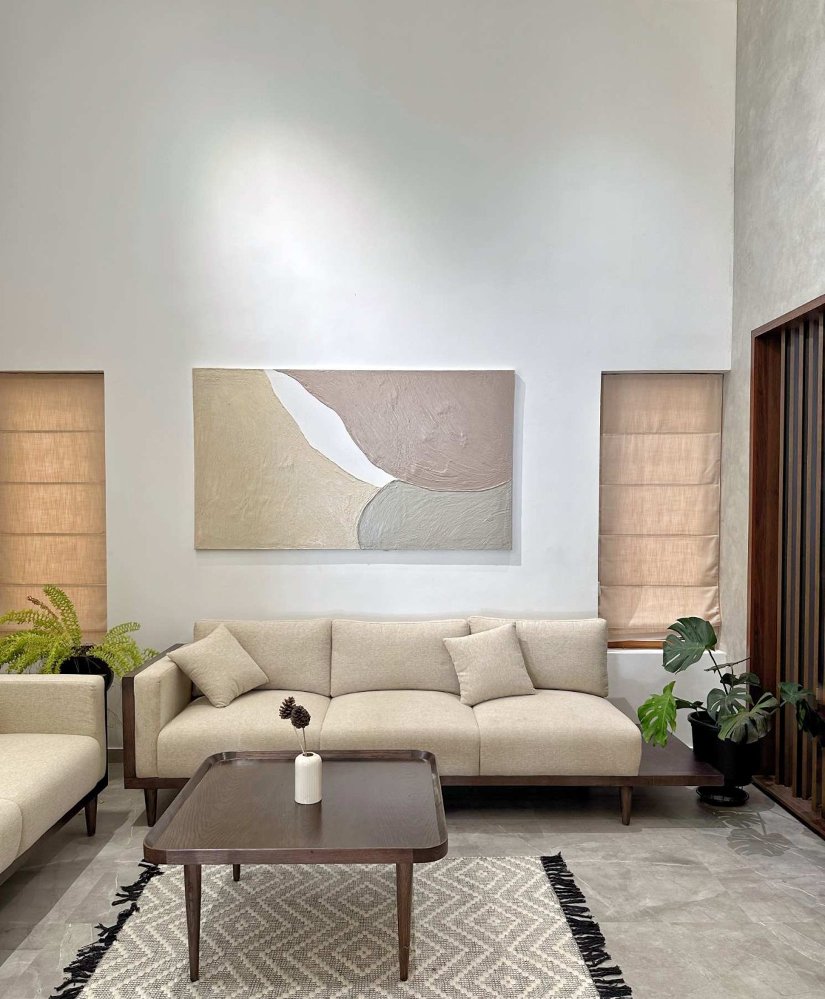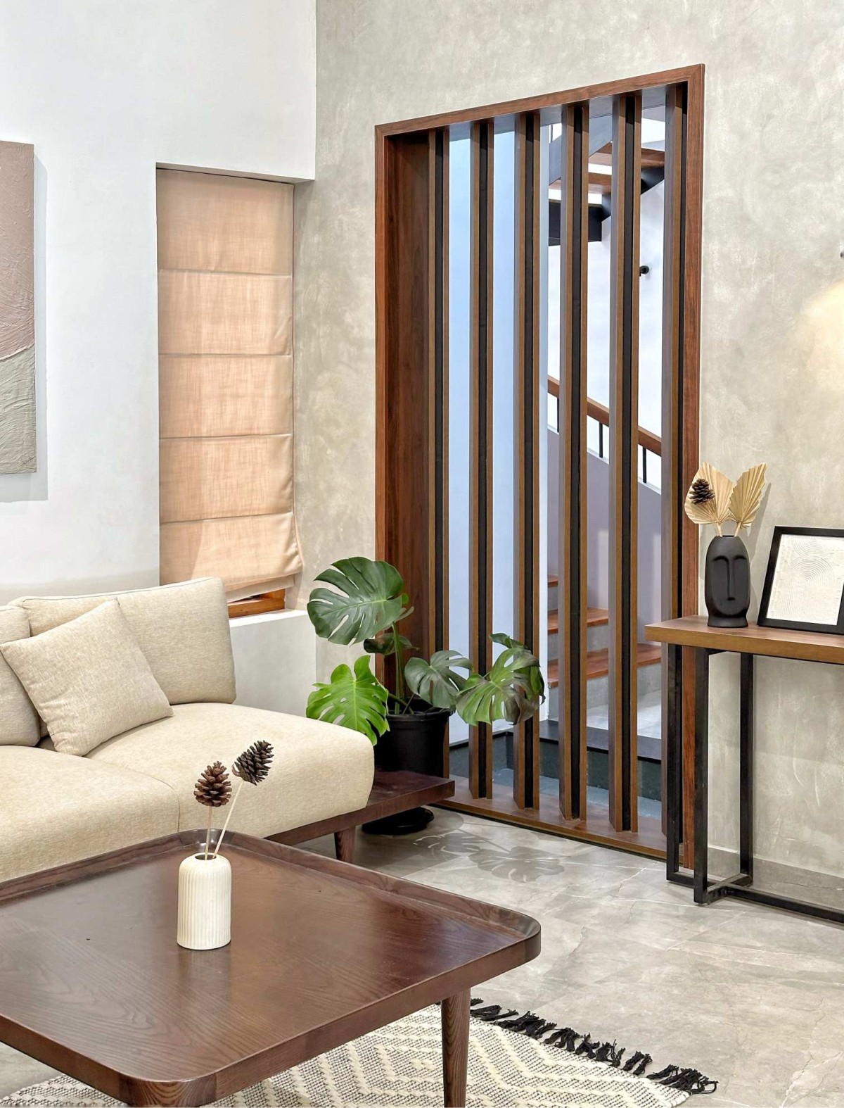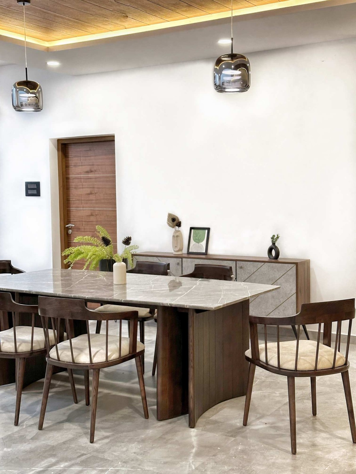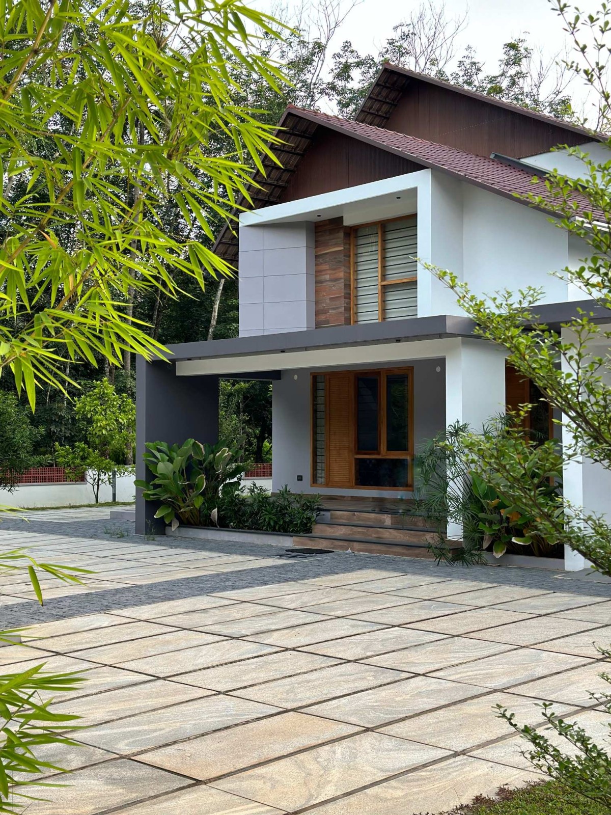 Tropical Slopes is a 2700 sq.ft residence designed in a tropical contemporary style, blending minimalistic architectural elements with the richness of nature. Defined by elegant sloped roofs and a soft material palette, the home embraces simplicity while responding to its lush, green surroundings. The interiors follow a pastel-toned scheme, allowing light and air to flow freely, creating a serene, grounded atmosphere. Nestled within a vibrant tropical landscape, the residence becomes an immersive experience—where design and nature coexist in quiet harmony.