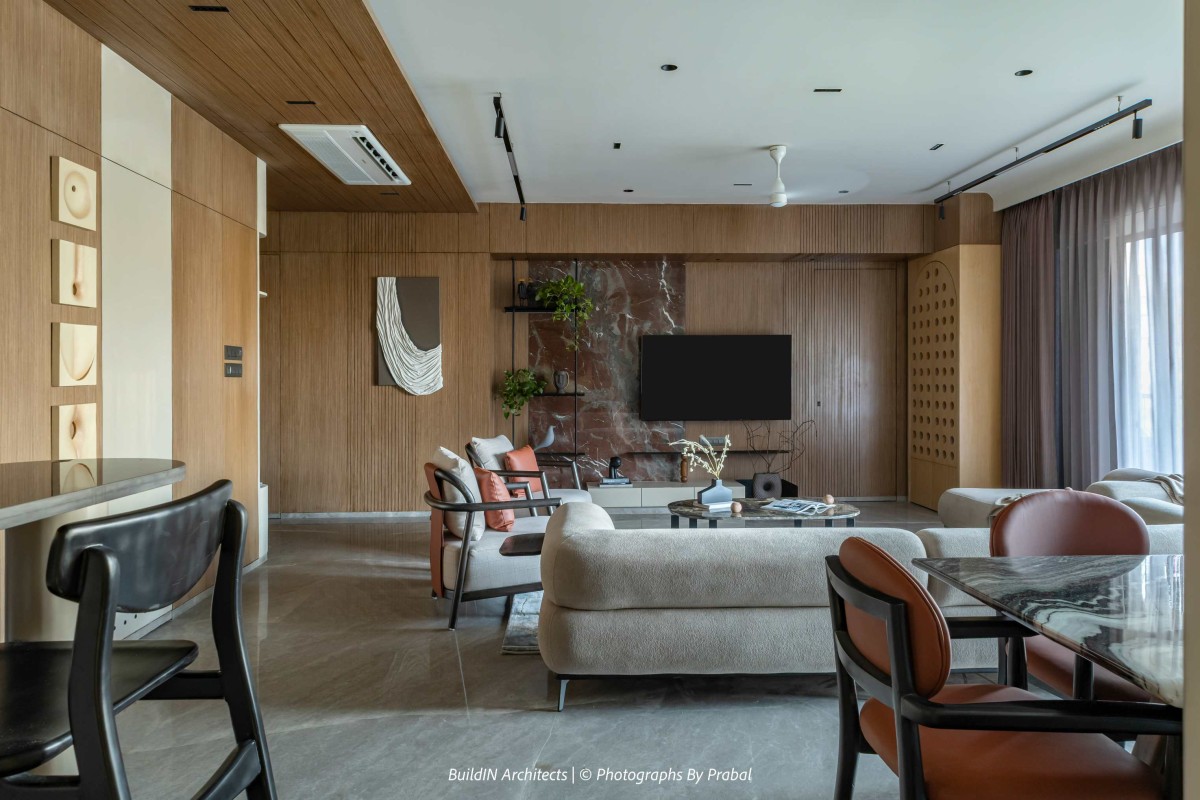 The living space celebrates the art of contemporary refinement, where understated luxury meets thoughtful detailing. Defined by a harmonious palette and tactile materiality, the design exudes a sense of quiet sophistication and spatial coherence.