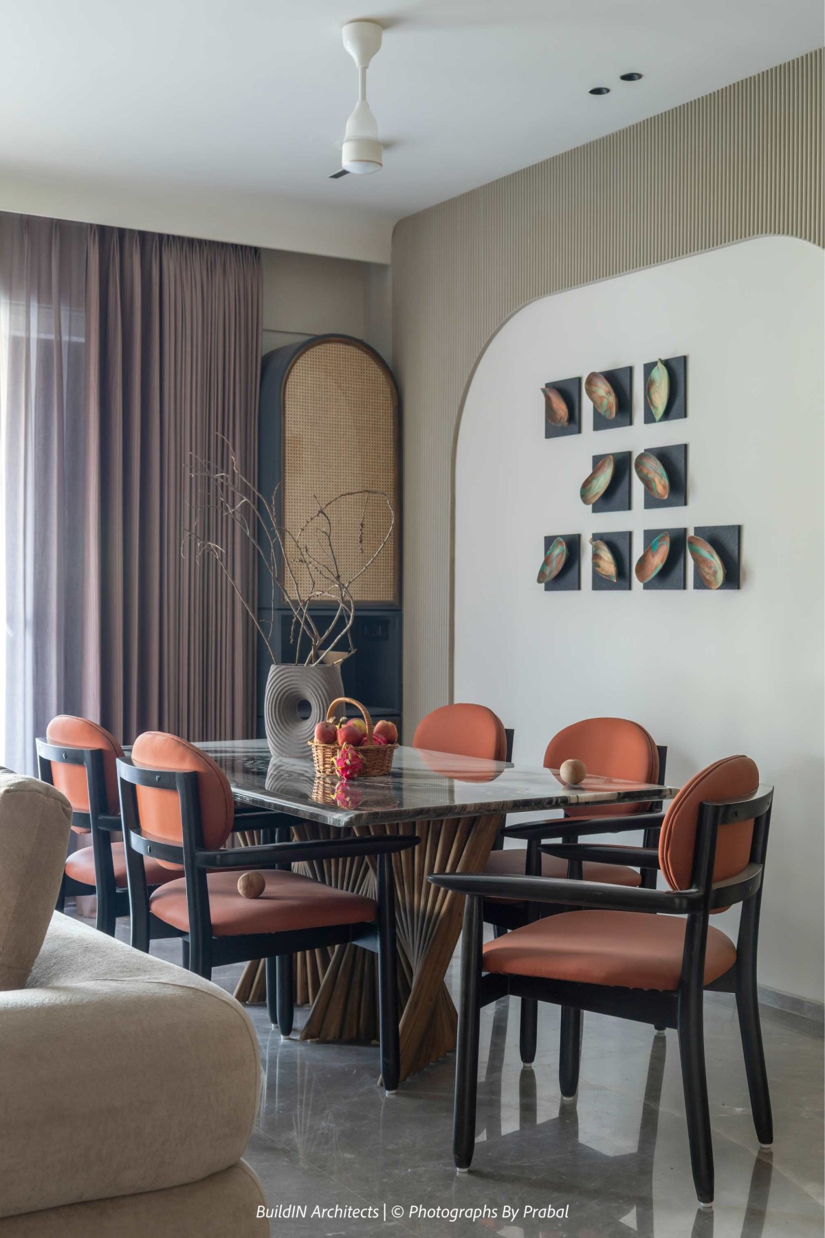 Touches of greenery soften the geometry, bringing an organic balance to the otherwise structured interior. The result is a space that feels elegant, grounded, and effortlessly modern—a reflection of design that values both form and feeling.