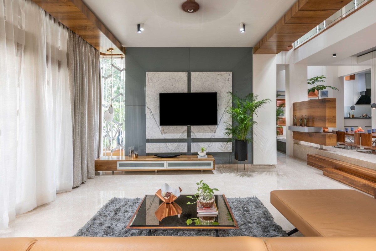 We began the design process of this home where we tried to integrate features of a traditional Indian home into a contemporary dwelling space. The idea was to offer the best views and experiences to the occupants that constantly leave one intrigued and interested while also offering visuals that bring comfort and solace. Dry and green courts were integrated into the plan to create pockets of spaces that were ideal to unwind, relax and bond. The plan is essentially open in nature with different spaces flowing into each other seamlessly.