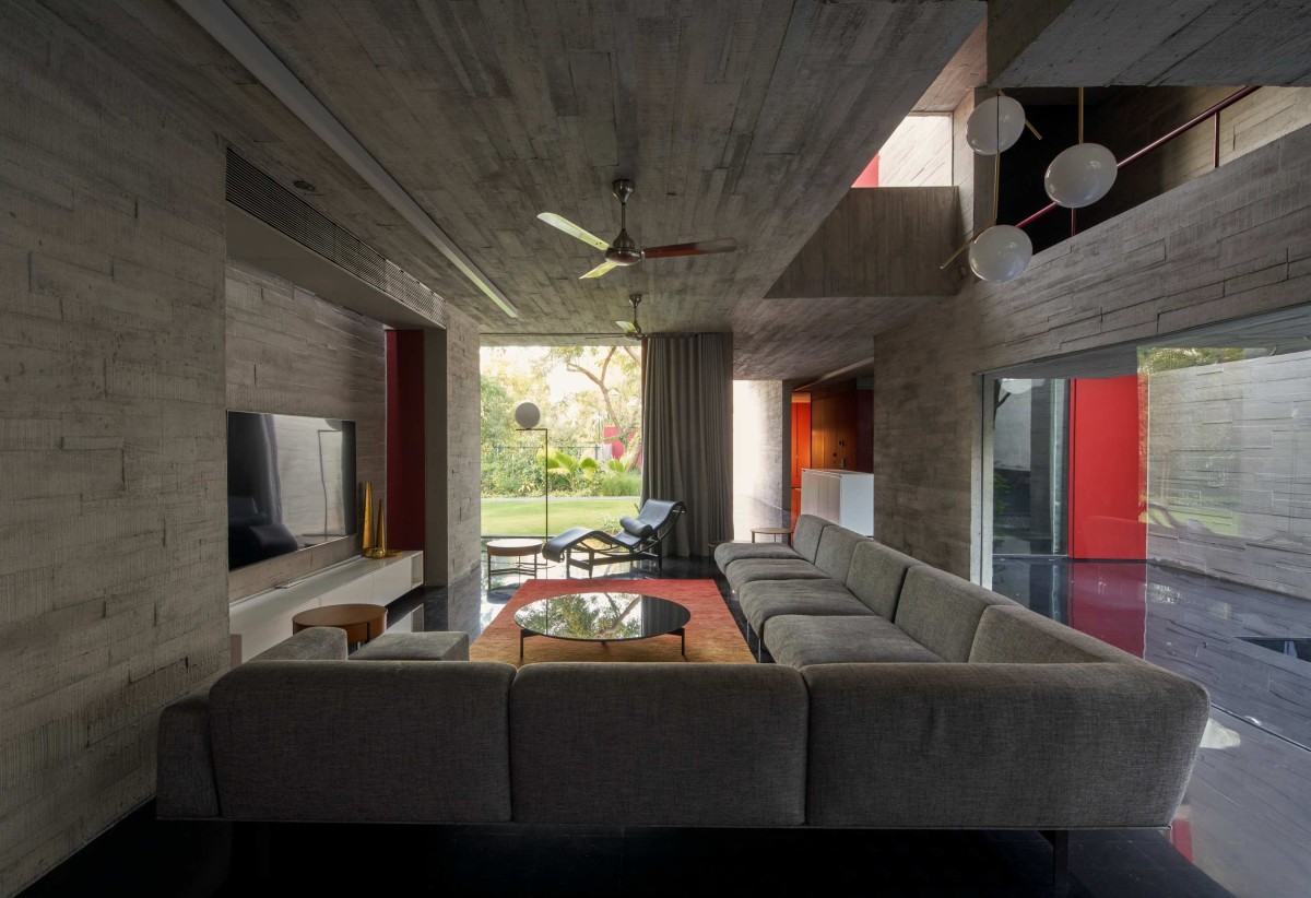 Living room of Trees Sliced Through by Matharoo Associates