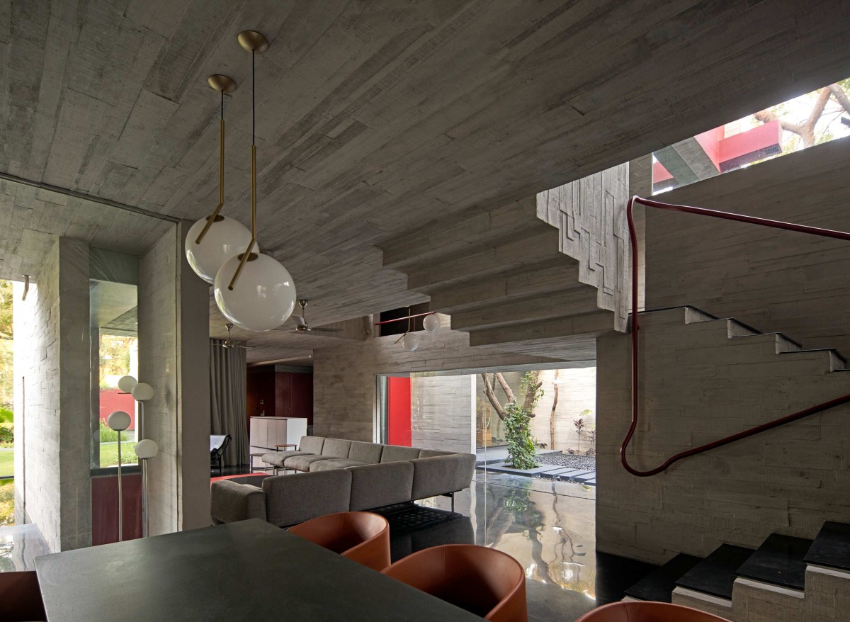 Living room & Courtyard of Trees Sliced Through by Matharoo Associates