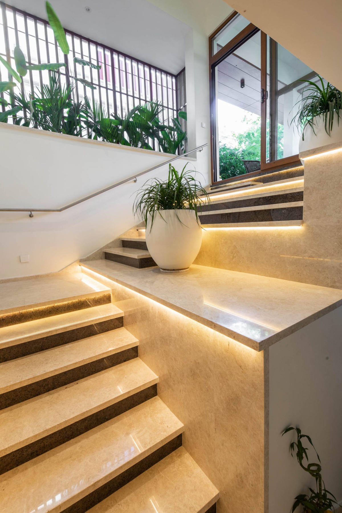 Staircase to Main door of Veena & Ashok Residence by Design Plus