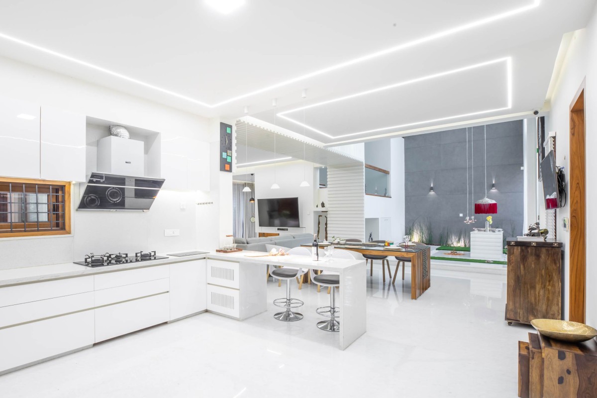 Kitchen to Pooja area of Veena & Ashok Residence by Design Plus