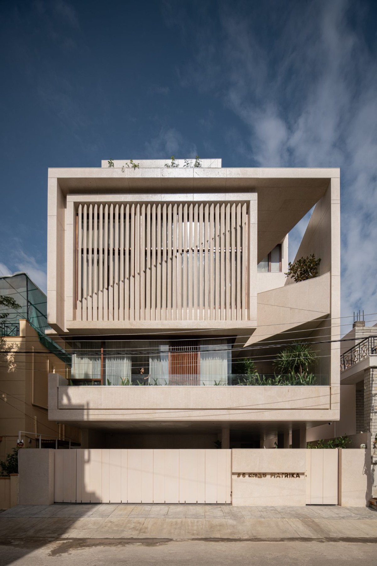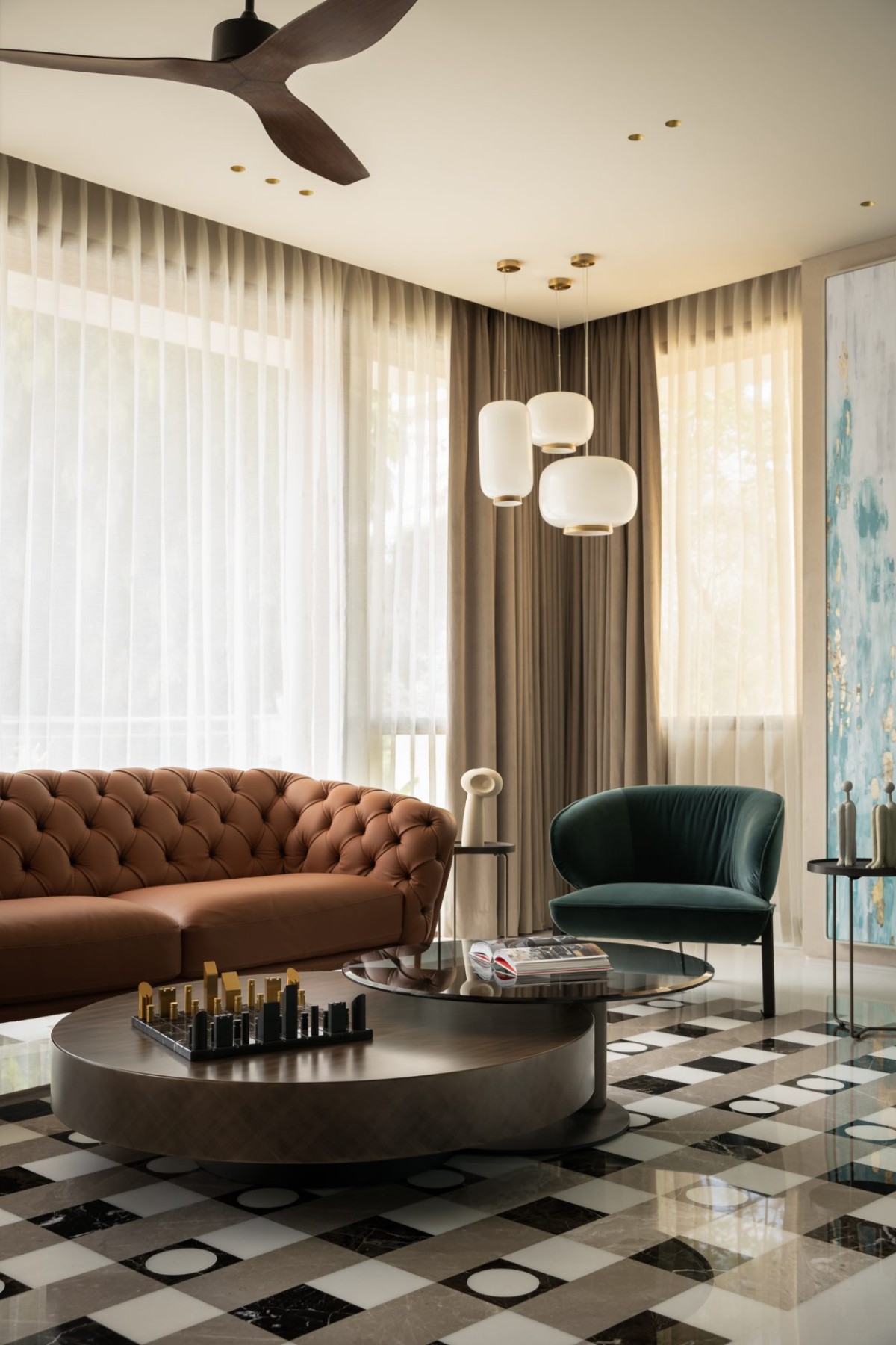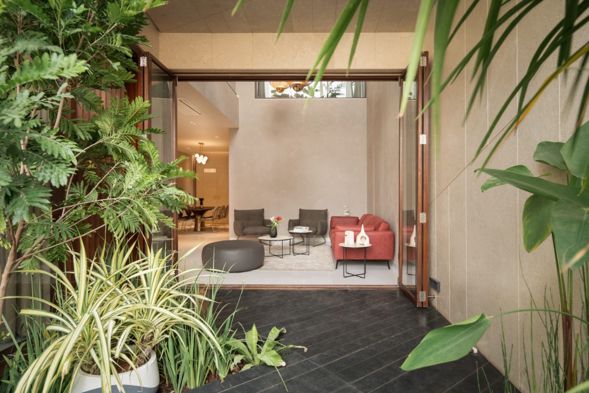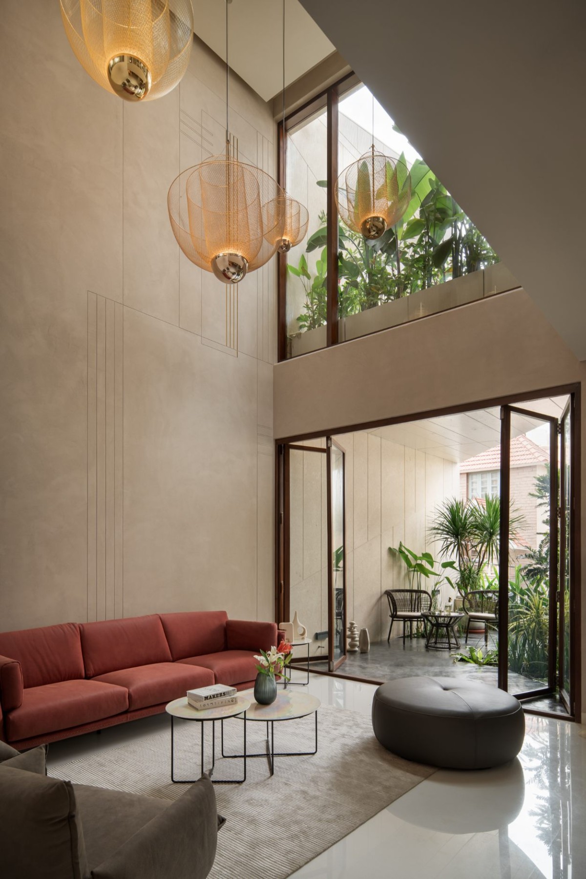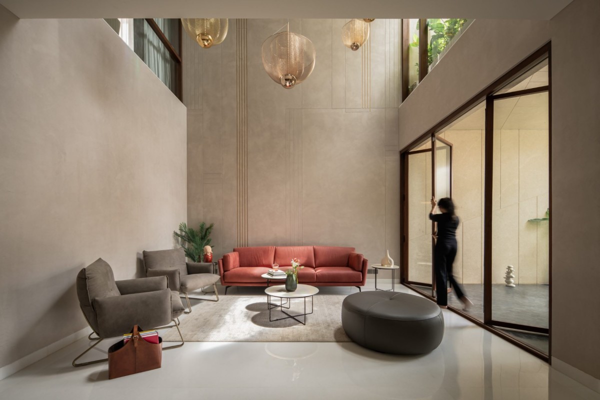 Formal living of Exterior view of Wedge Villa by Cadence Architects