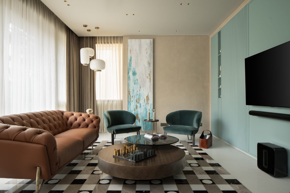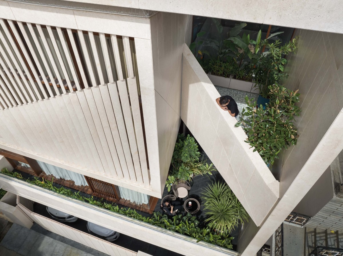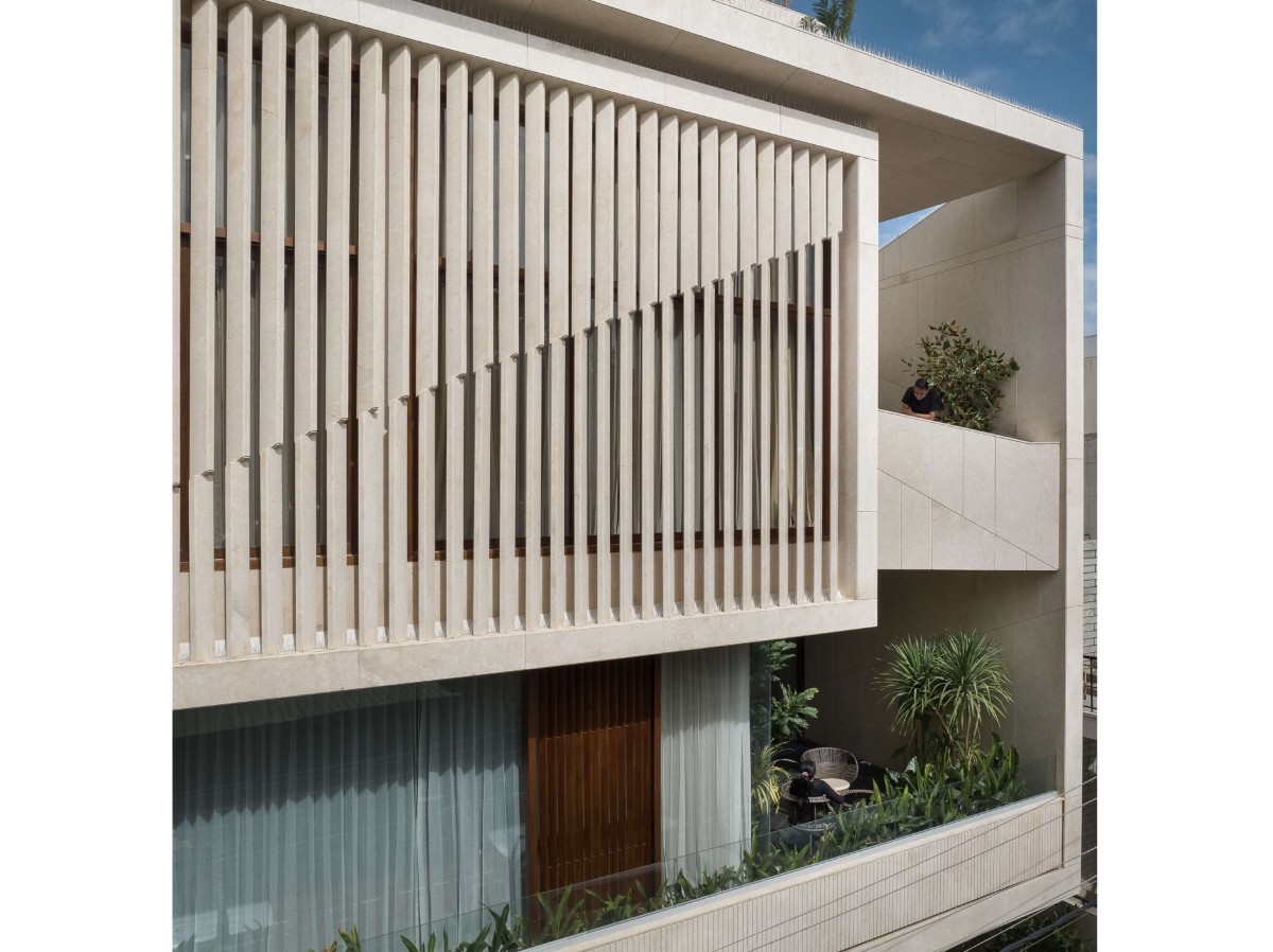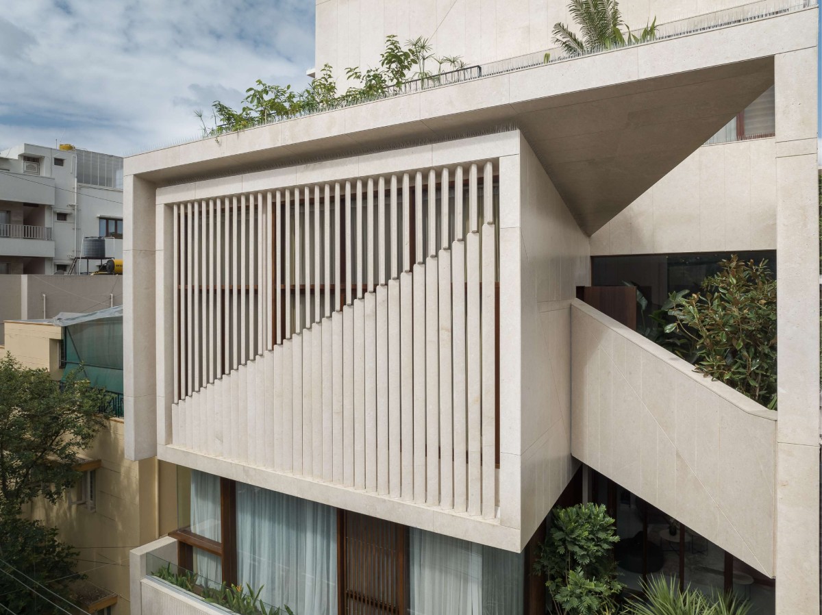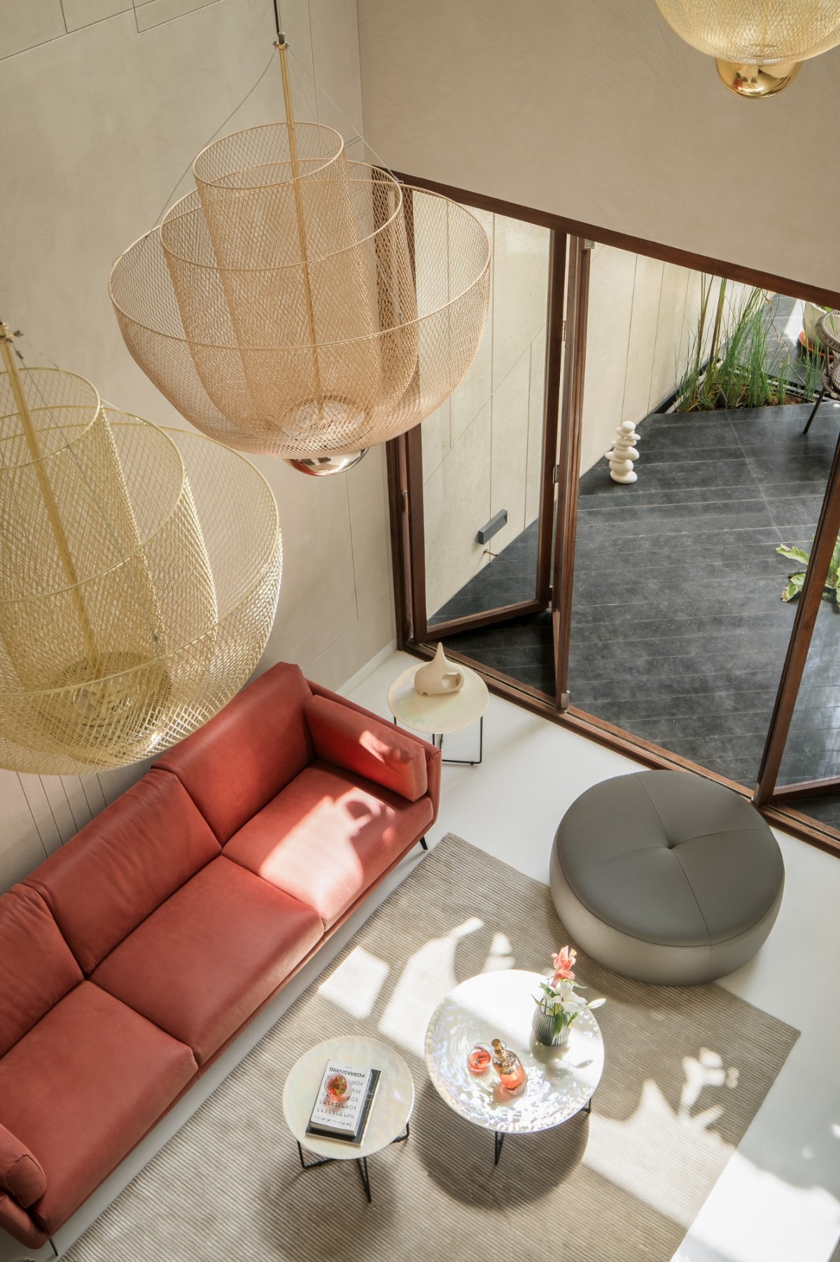 Formal living of Exterior view of Wedge Villa by Cadence Architects