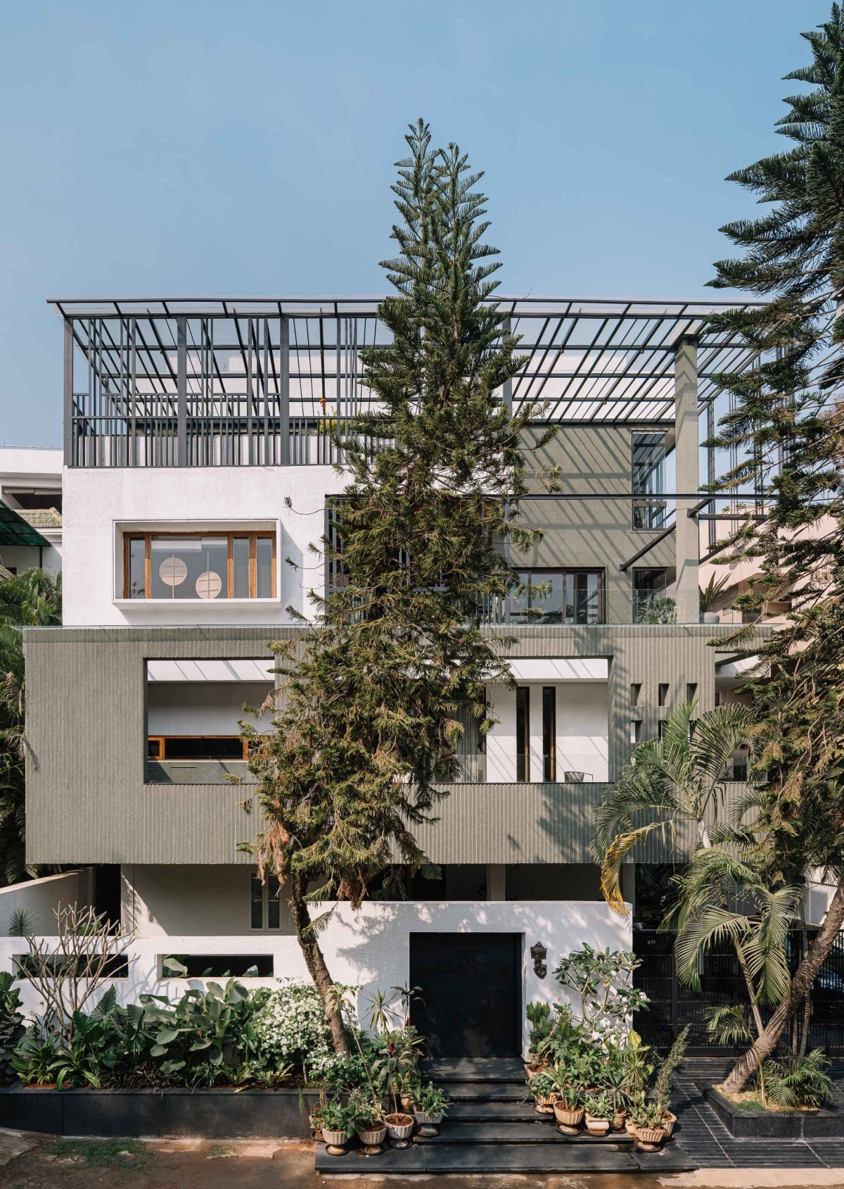 Aikyam. These projects explore passive design strategies, perforated façades, and spatial planning that respond to climate and landscape.